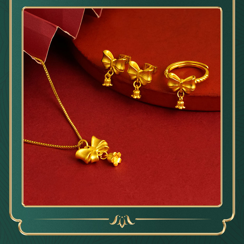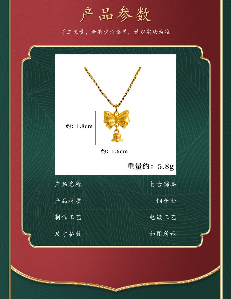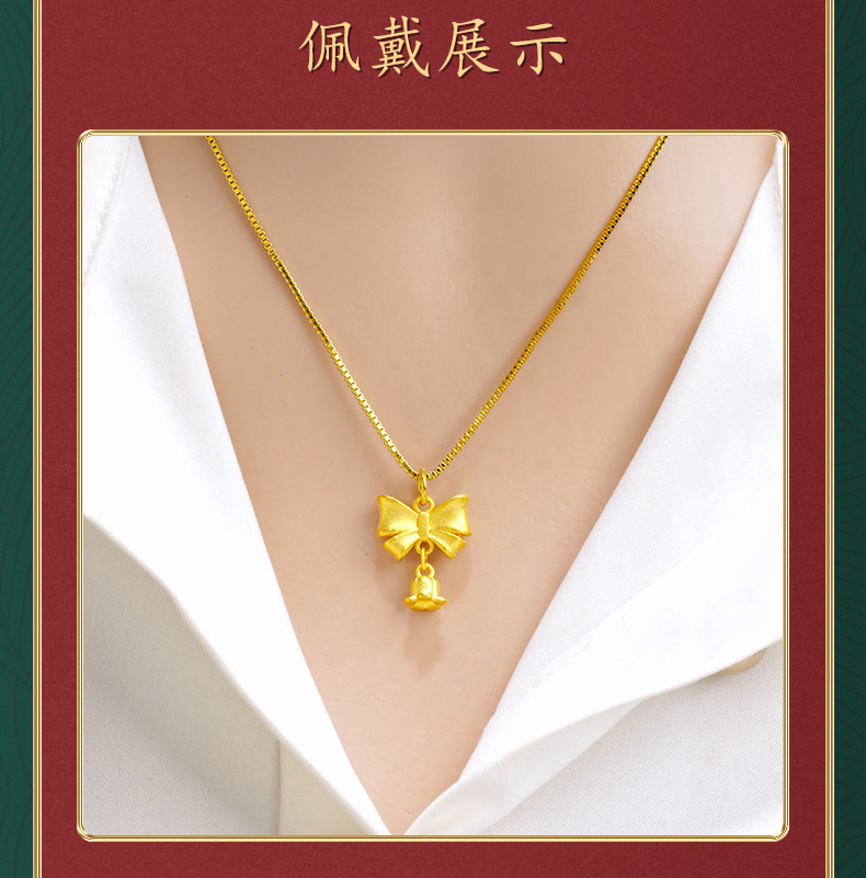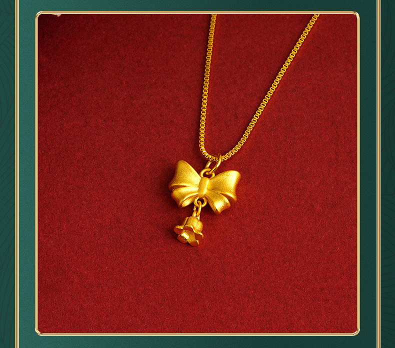 热销配饰新品蝴蝶结跨境义乌配饰小众项饰品仿黄金沙金项链女百搭