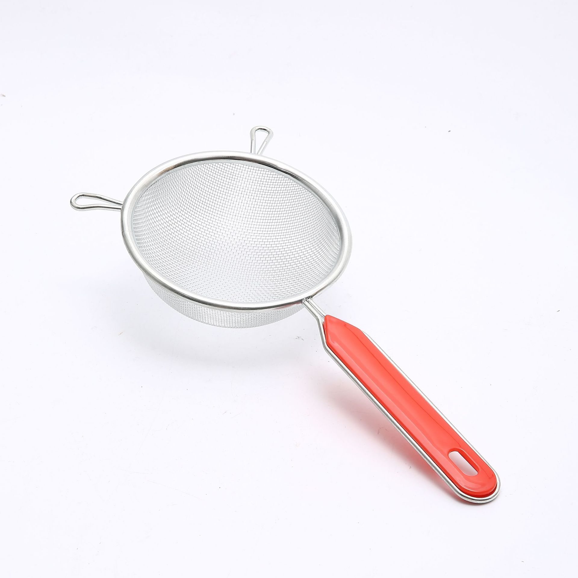 家用厨房油格12-24公分加粗塑柄油格不锈钢双耳红柄油格铁镀锌红