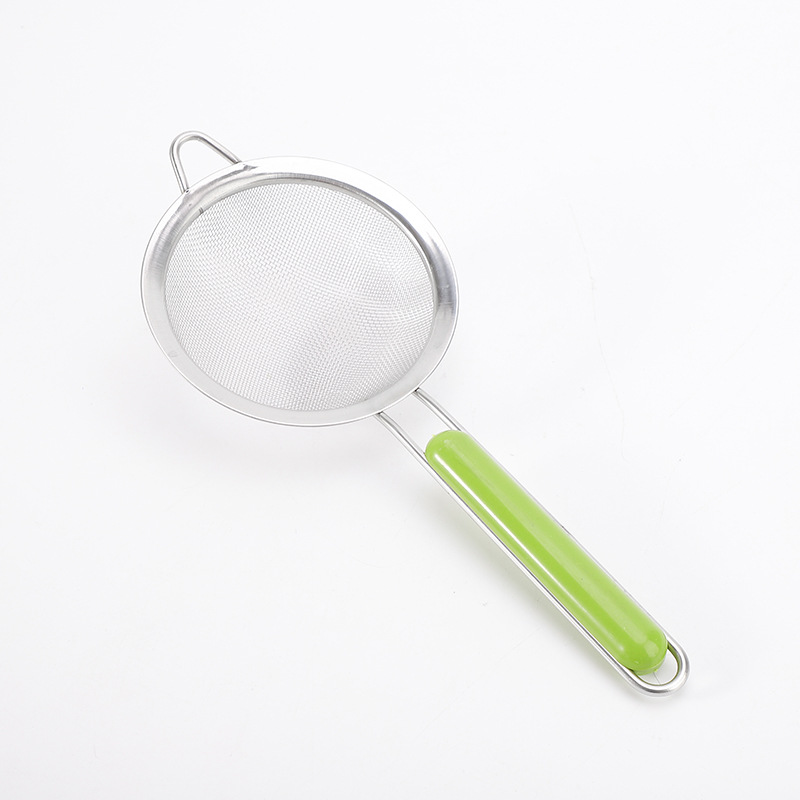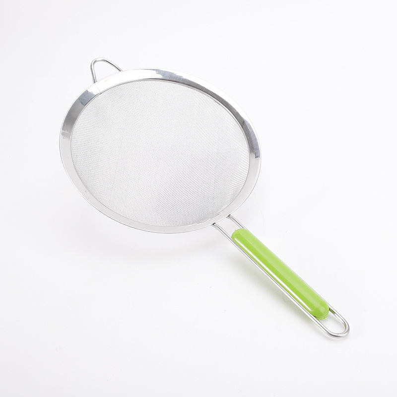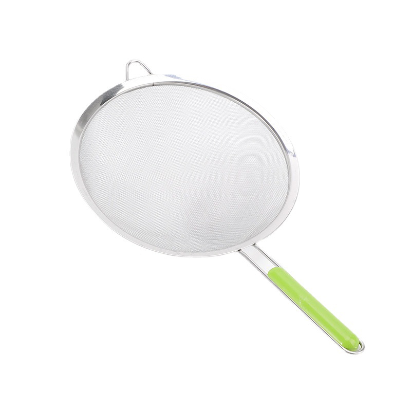 创意不锈钢家用厨具油格绿色手柄豆浆果汁漏勺过筛器宽边绿柄油格