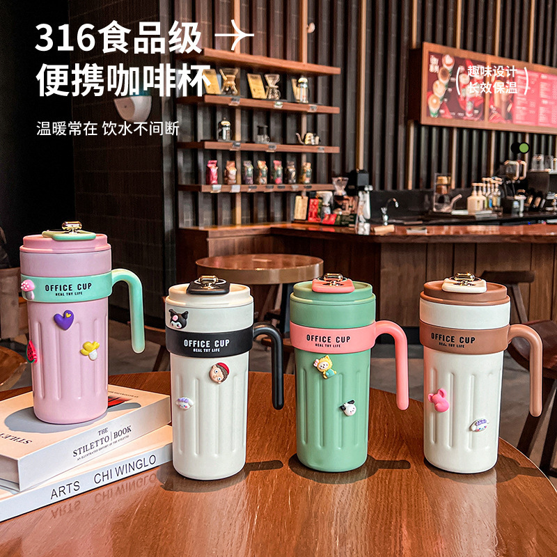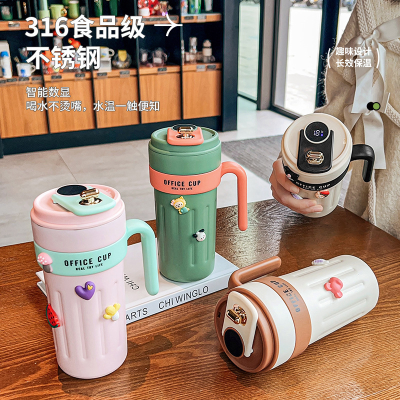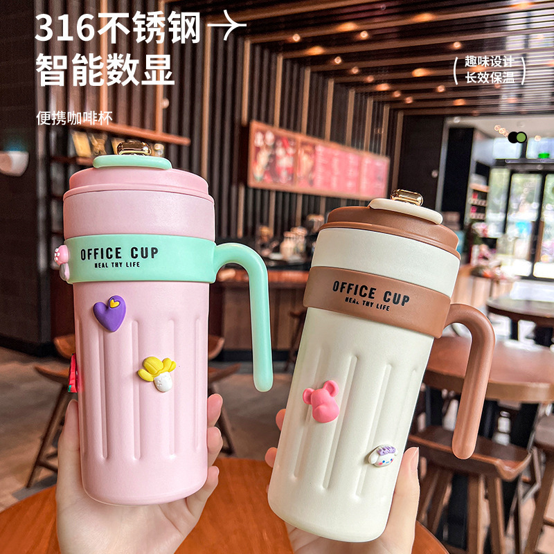 智能咖啡杯不锈钢高颜值女316保温杯大容量手柄办公便携车载水杯
