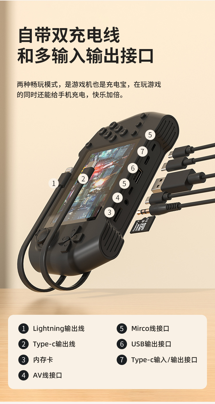 1.两种畅玩模式,是游戏机也是充电宝,在玩游戏的同时还能给手机充电,快乐加倍