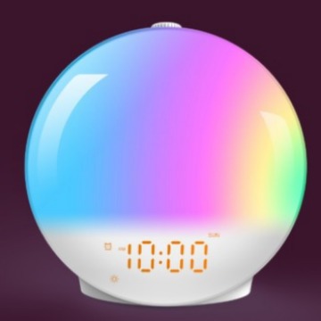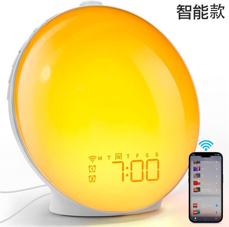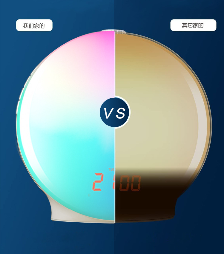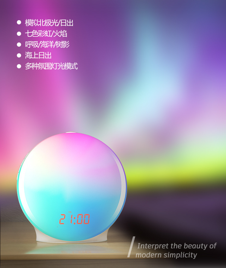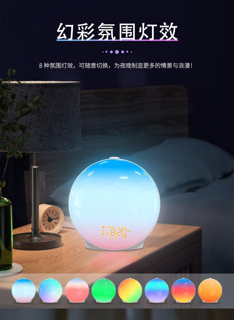 外贸专供模拟日出唤醒灯FM调频收音机电子闹钟学生定时睡眠幻彩