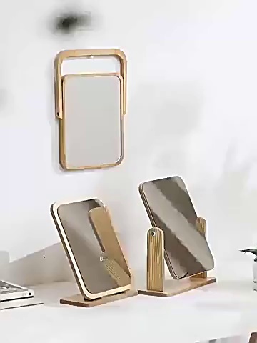 木质折叠台式化妆镜子高清便携ins风化妆镜学生大小号旋转木制镜