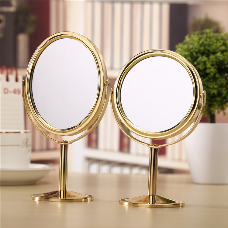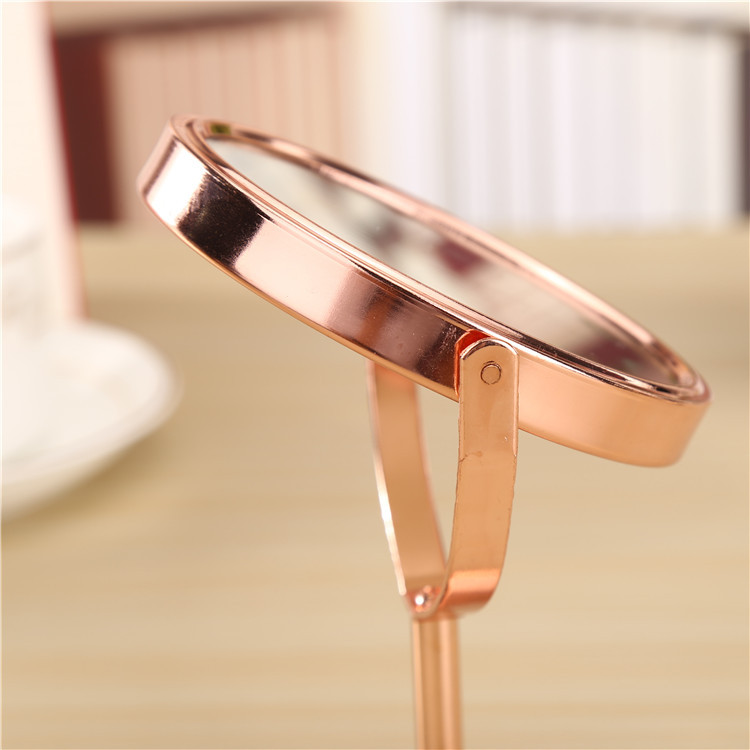 金属玫瑰金色便携台式双面圆形化妆镜可旋转铁艺台镜迷你美妆镜子