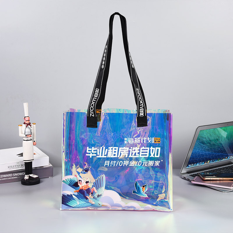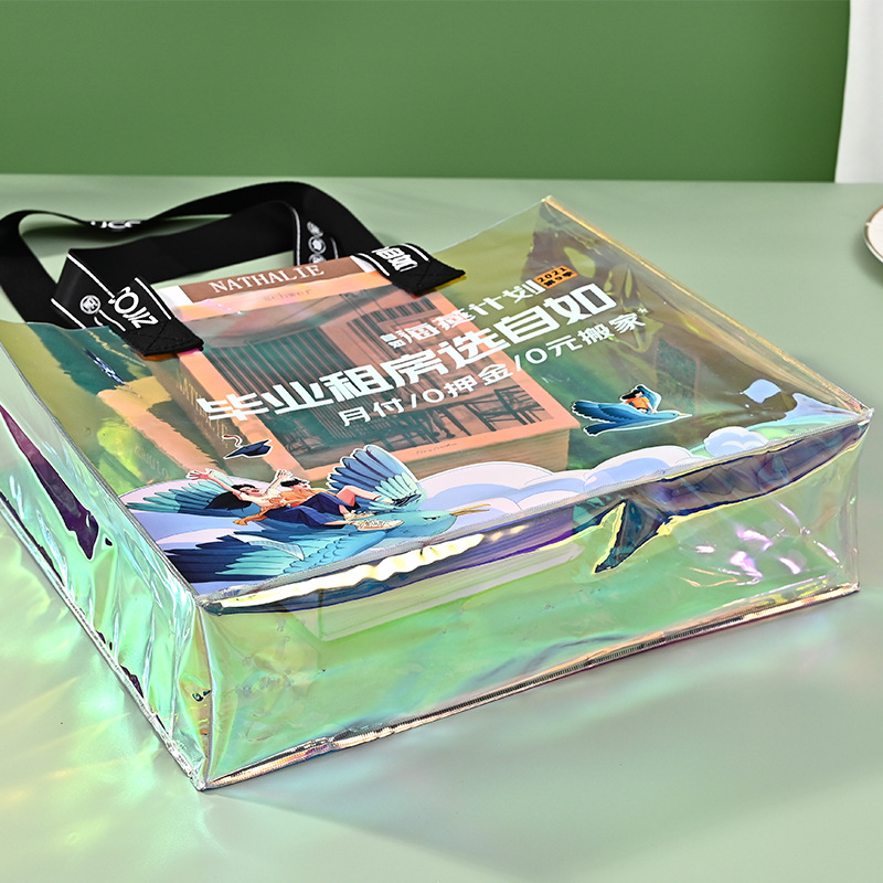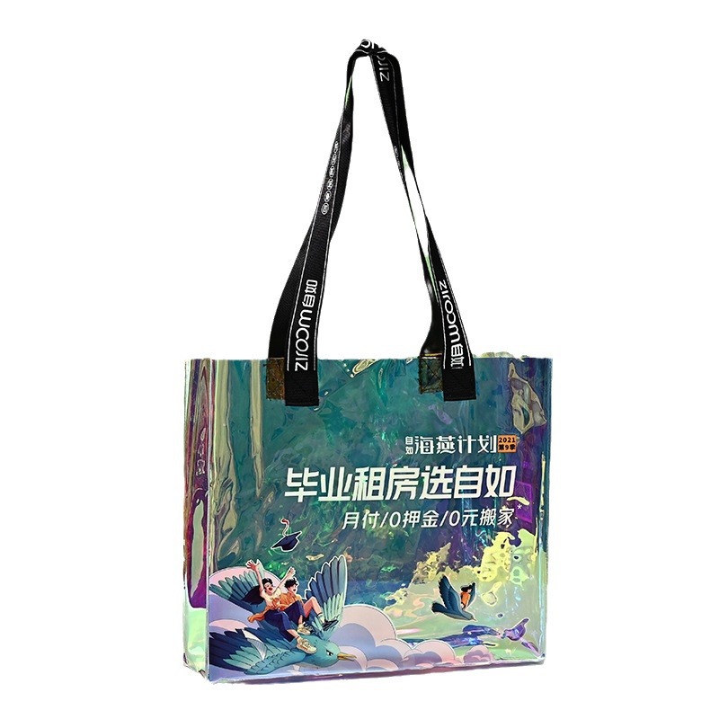 2024炫彩镭射pvc手提袋多用途果冻单肩包透明镭射礼品购物袋子