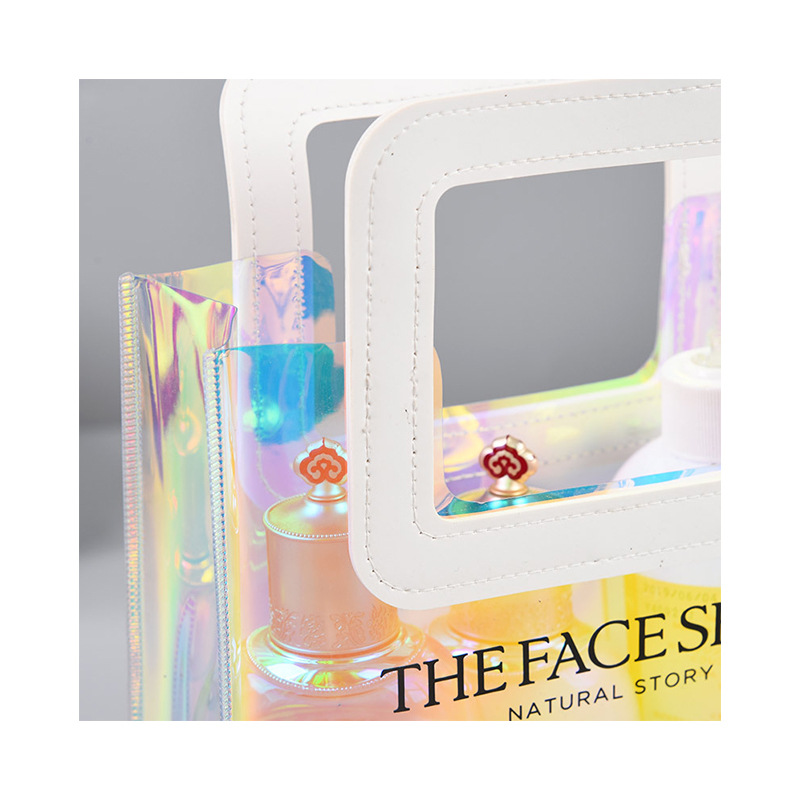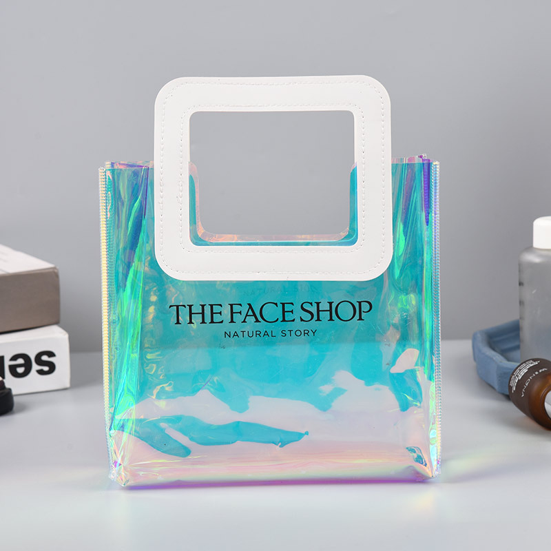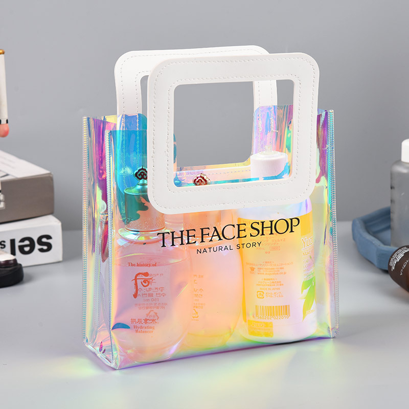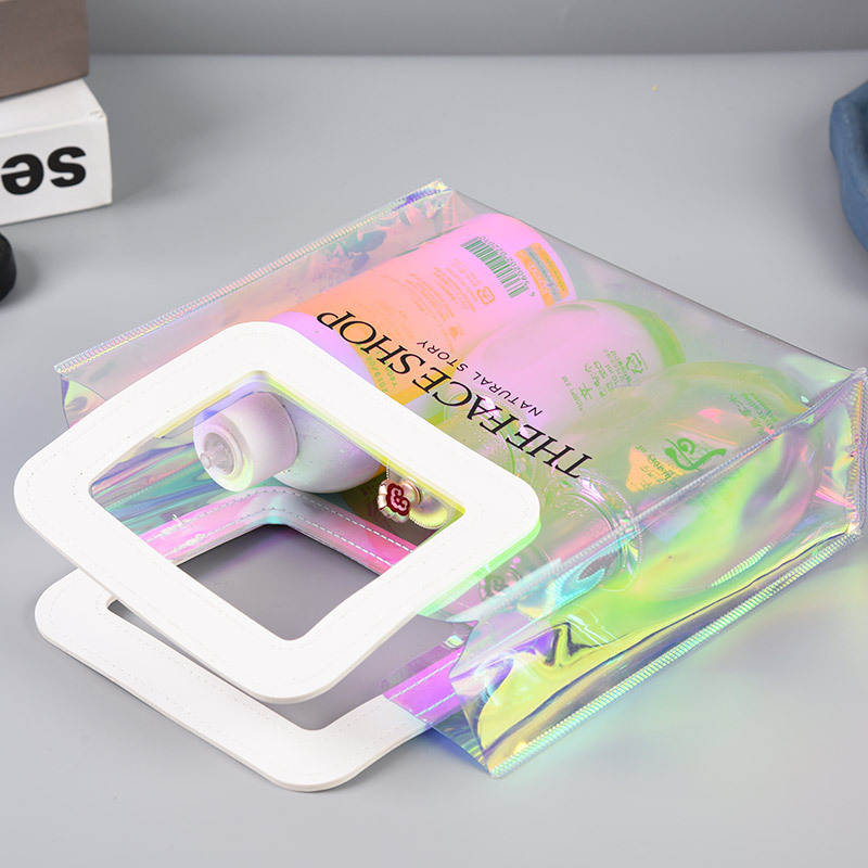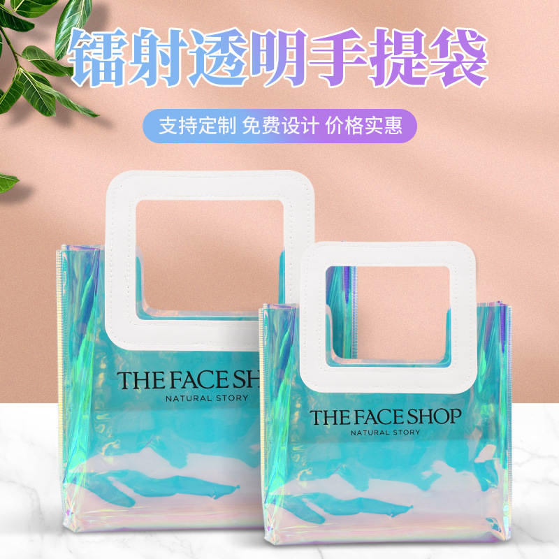 源头厂家客订PVC镭射手提包透明立体塑料幻彩开口时尚化妆包装袋