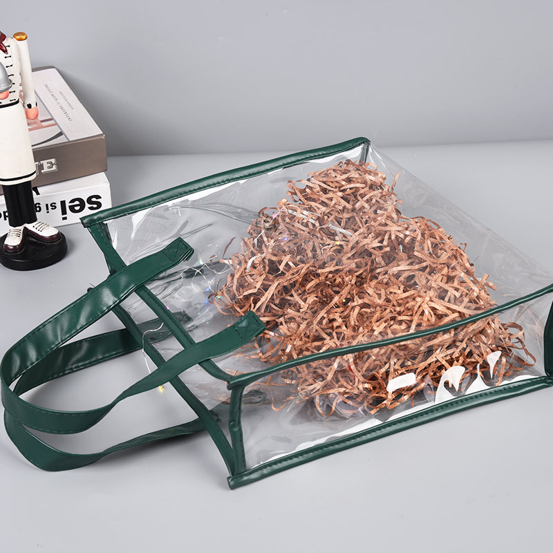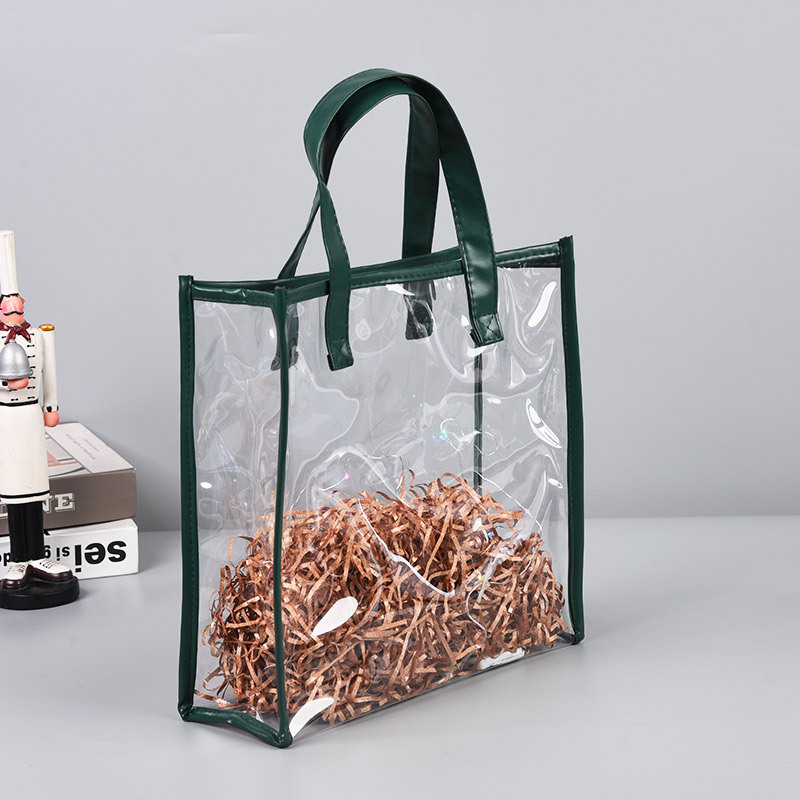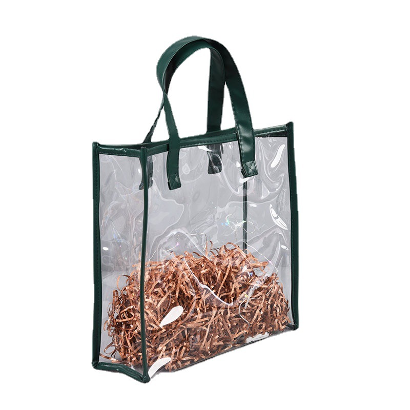 网红pvc手提袋可印logo透明塑料服装购物袋多规格时尚单肩包批发
