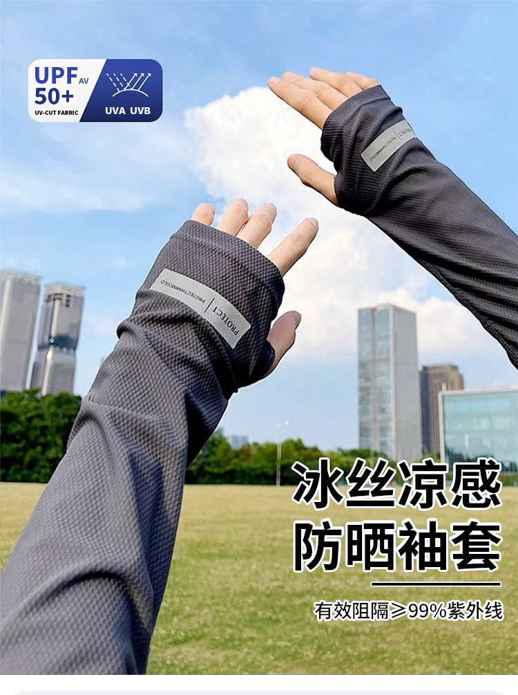 防晒冰袖男款宽松冰丝袖套手套夏季男士骑行防紫外线套袖护臂开车