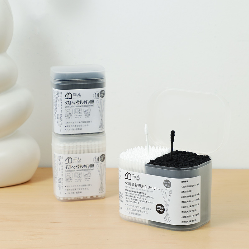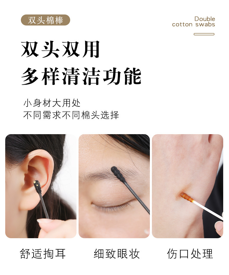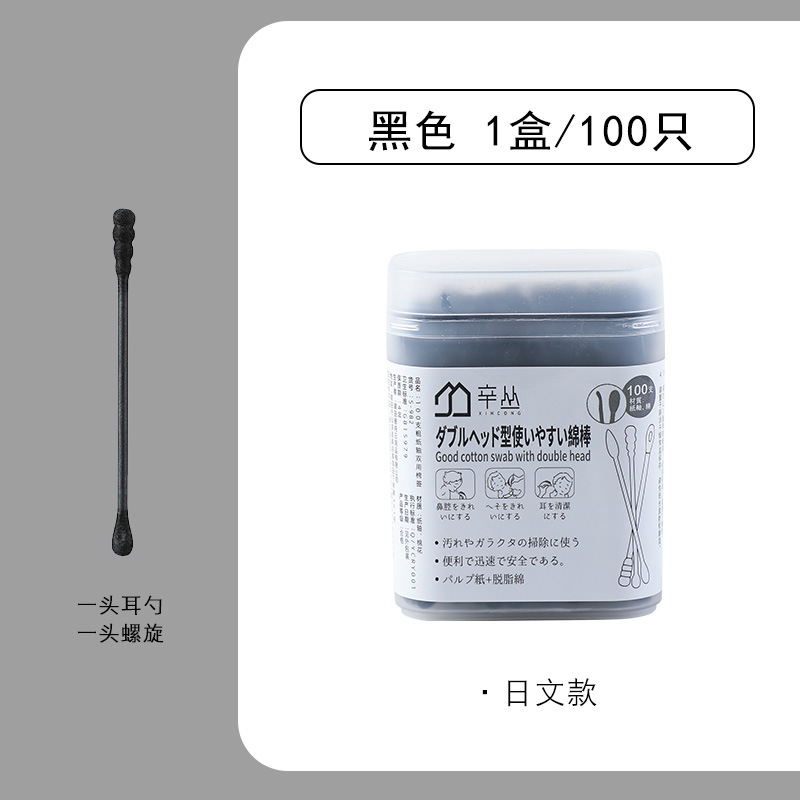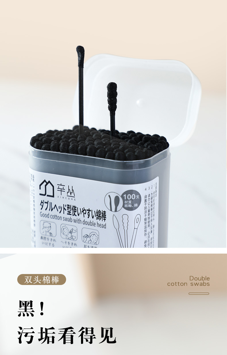 盒装黑色棉签掏耳朵白色棉棒挖耳勺清洁黑头一次性双头棉花棒代发