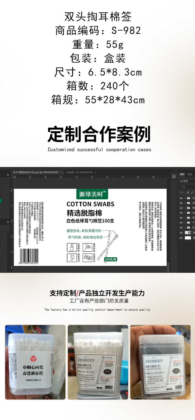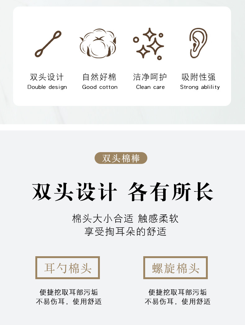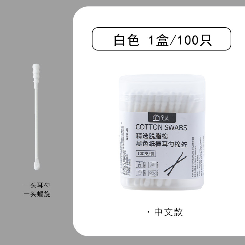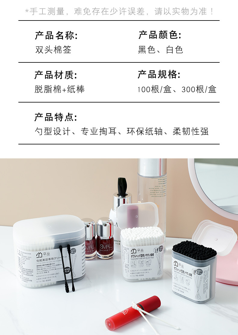 盒装黑色棉签掏耳朵白色棉棒挖耳勺清洁黑头一次性双头棉花棒代发