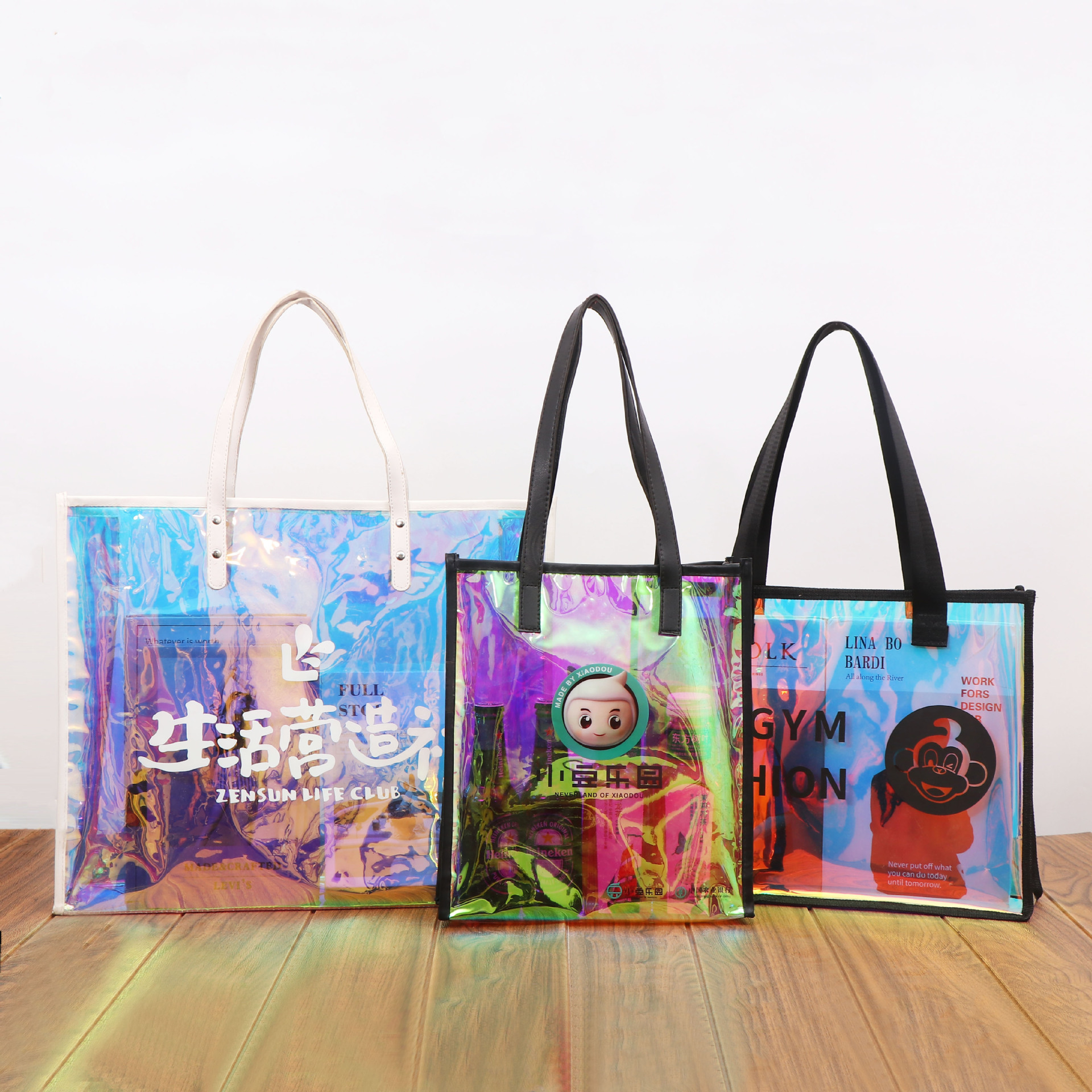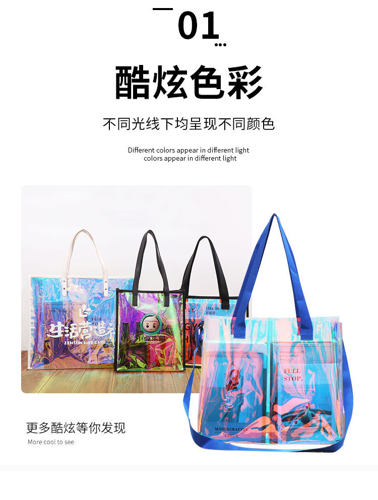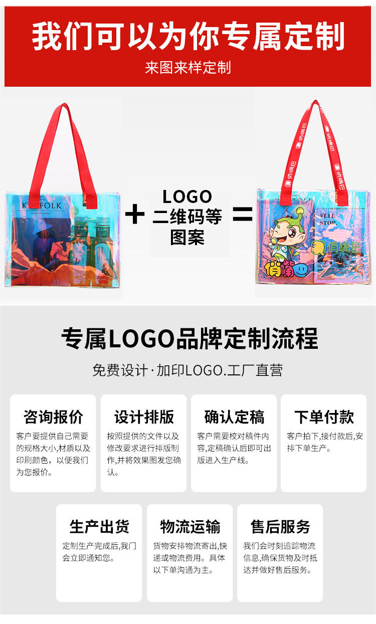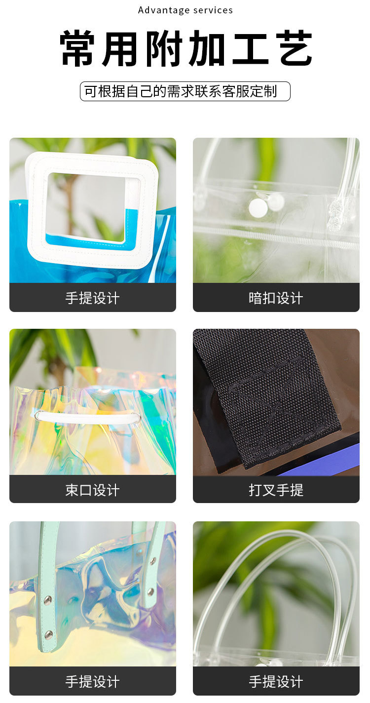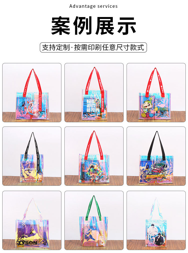 PVC镭射手提袋伴手礼包装幻彩透明塑料袋子大容量购物袋可印LOGO