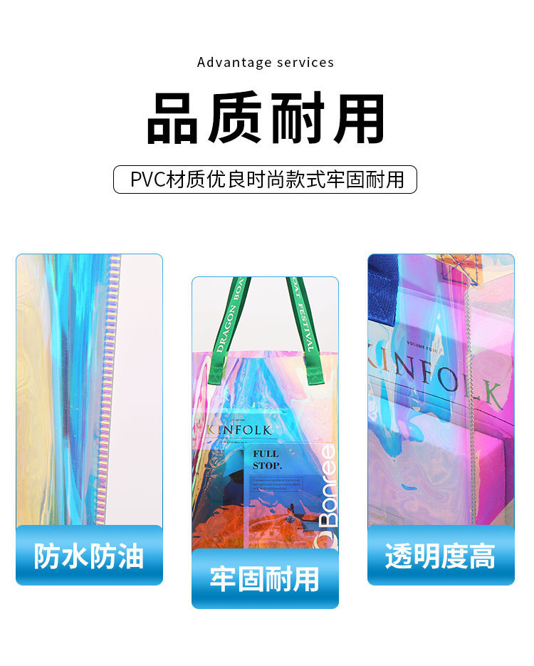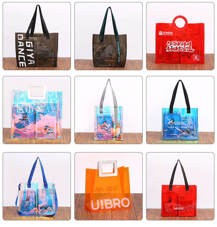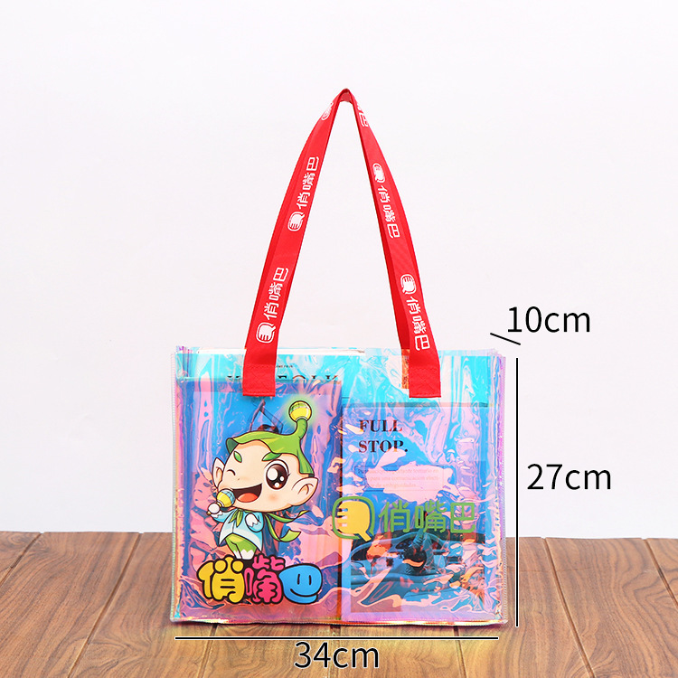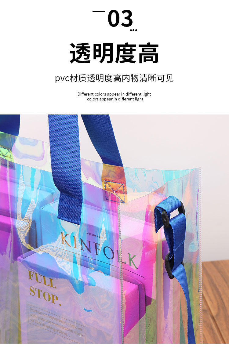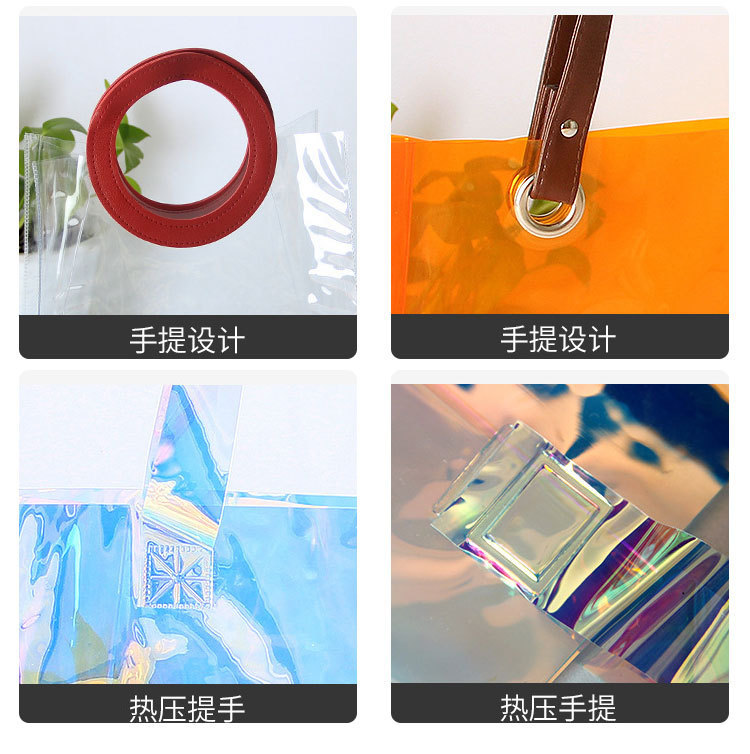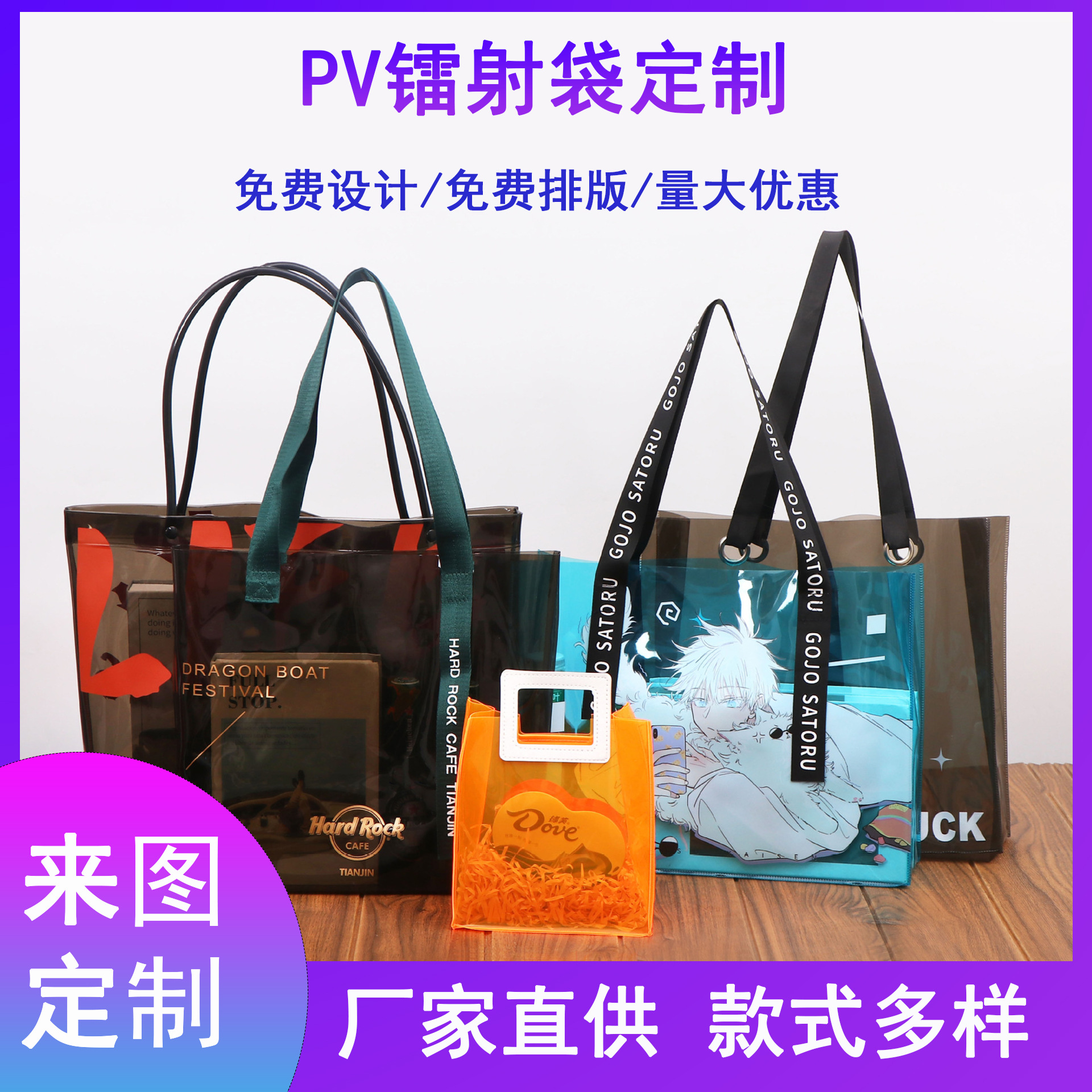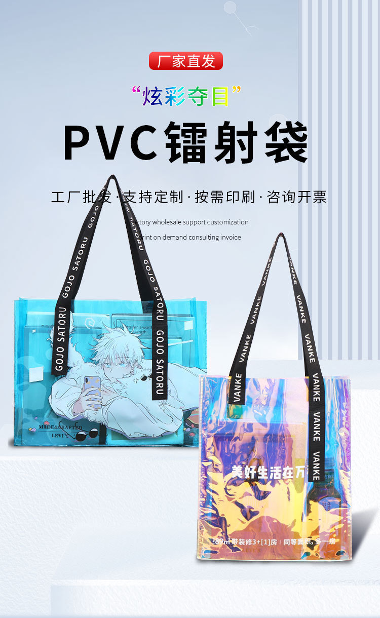 PVC镭射手提袋伴手礼包装幻彩透明塑料袋子大容量购物袋可印LOGO