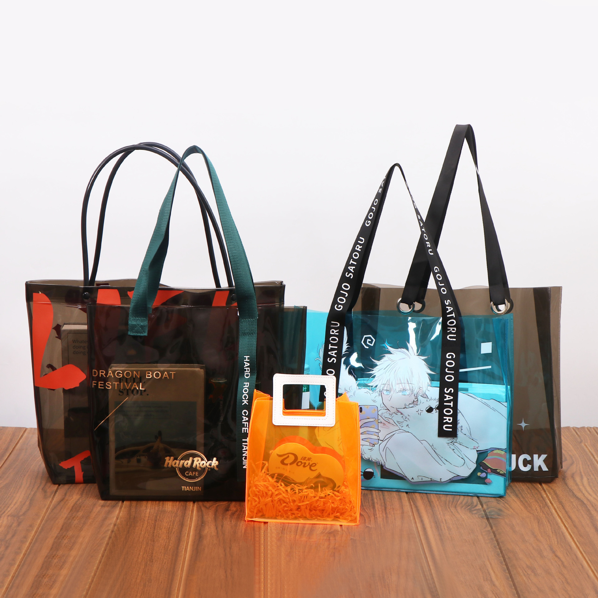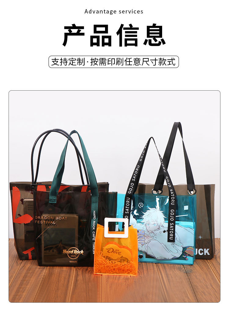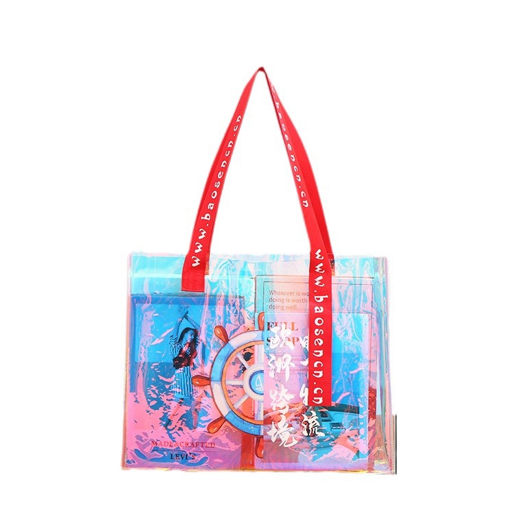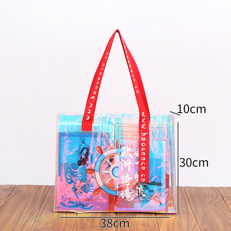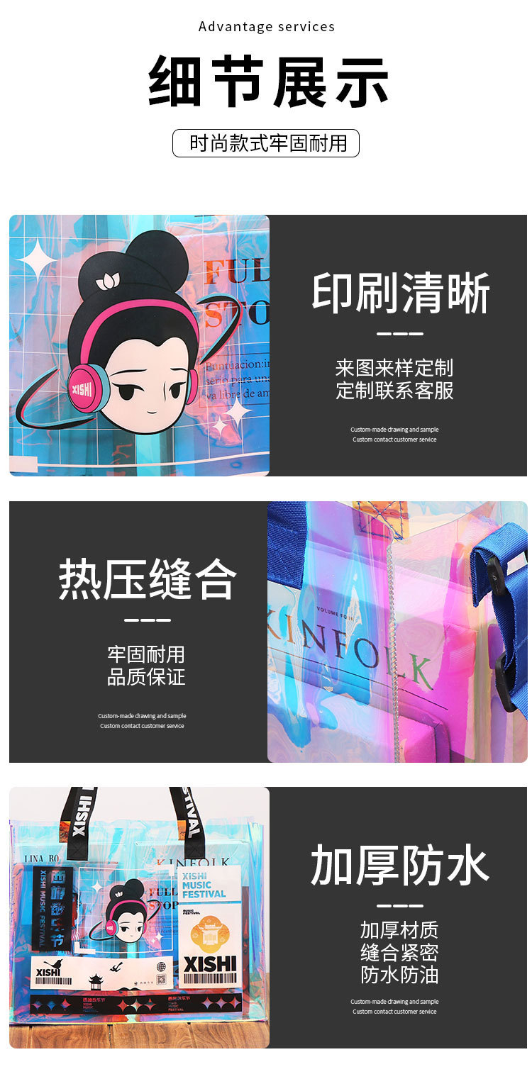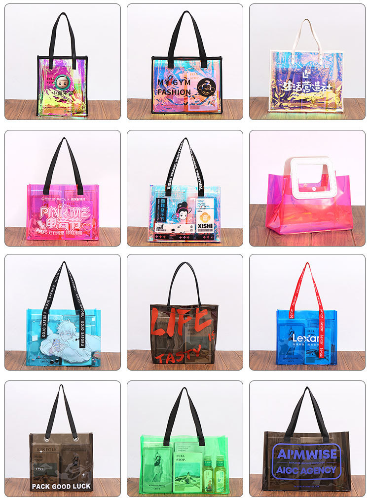 PVC镭射手提袋伴手礼包装幻彩透明塑料袋子大容量购物袋可印LOGO