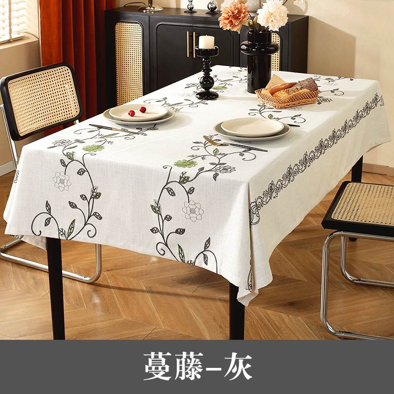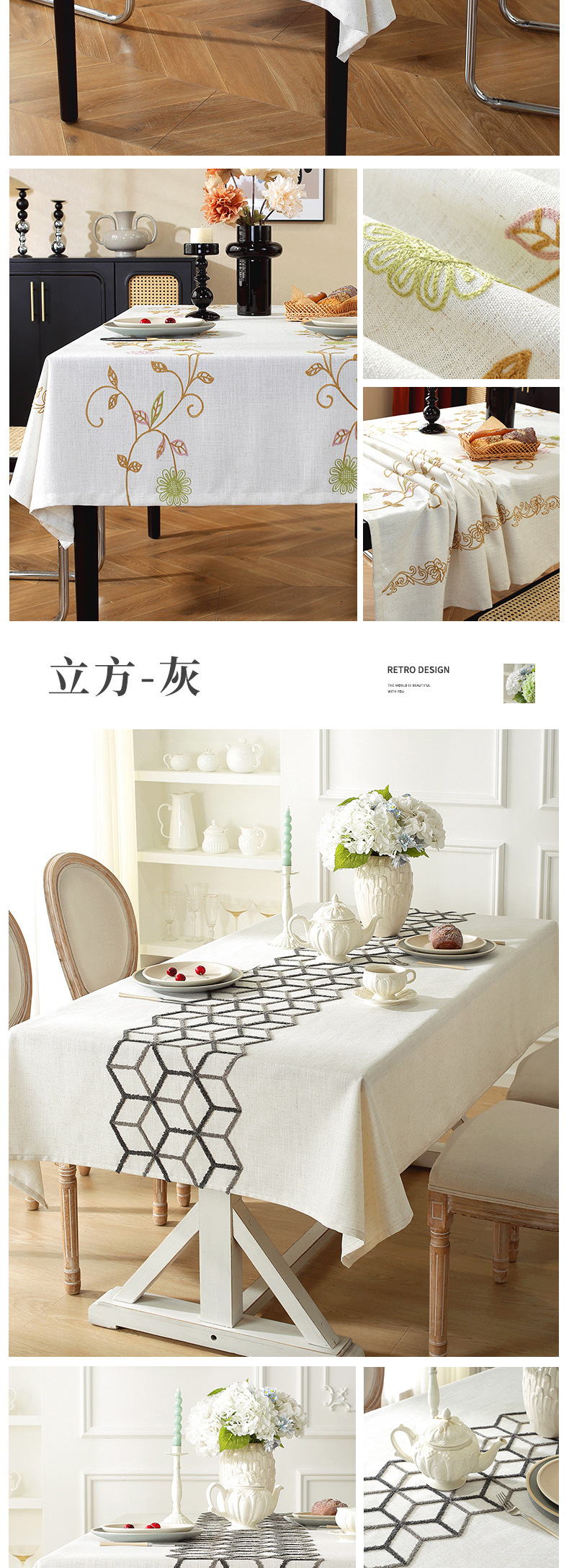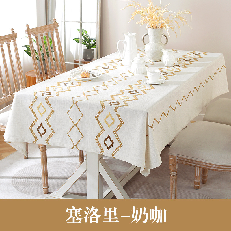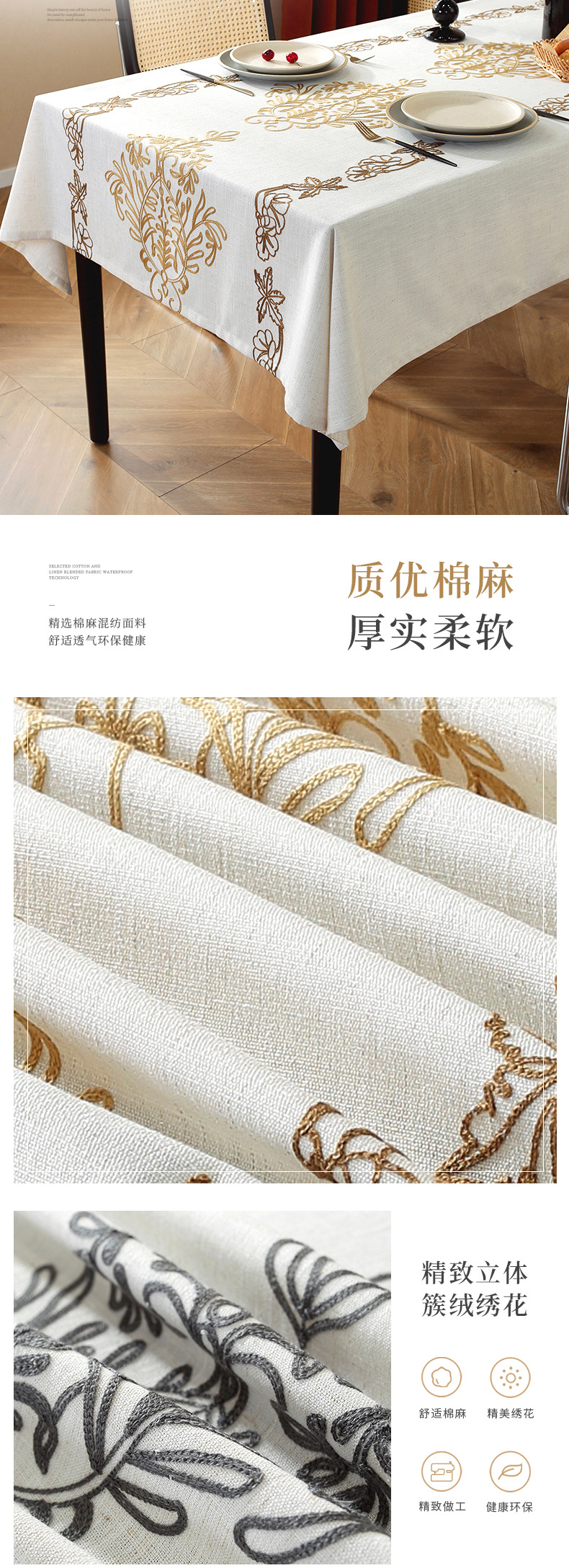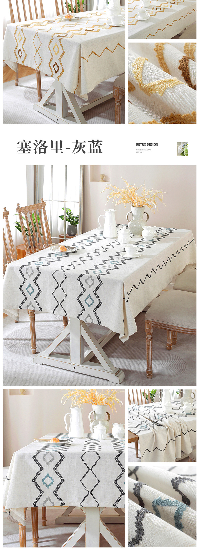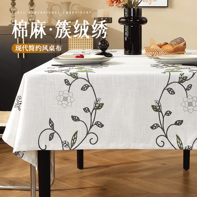 2024年跨境新款桌布现代简约装饰家用茶几巾簇绒绣花餐桌盖布批发