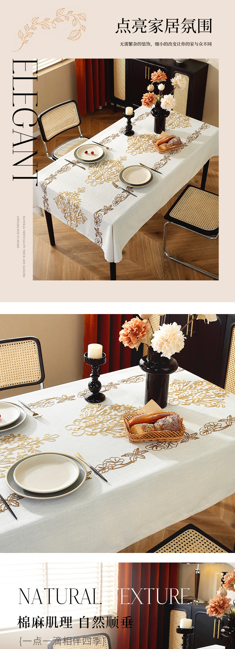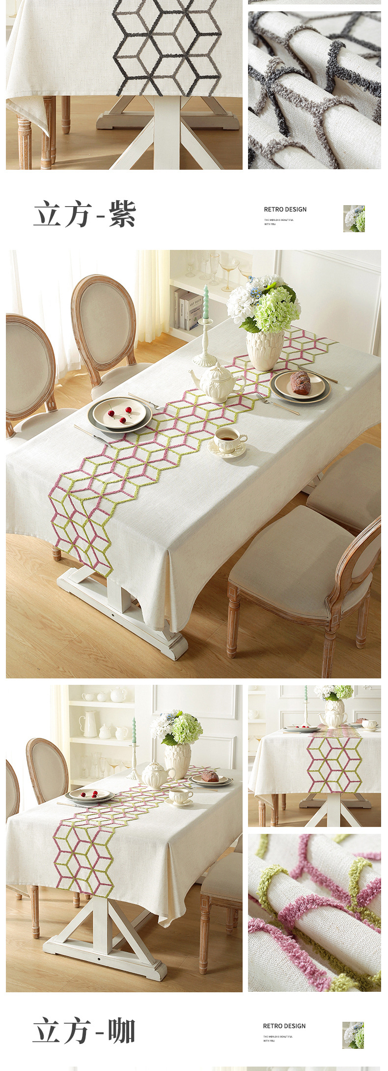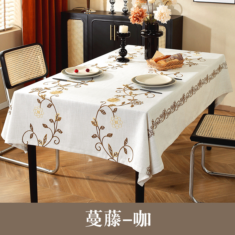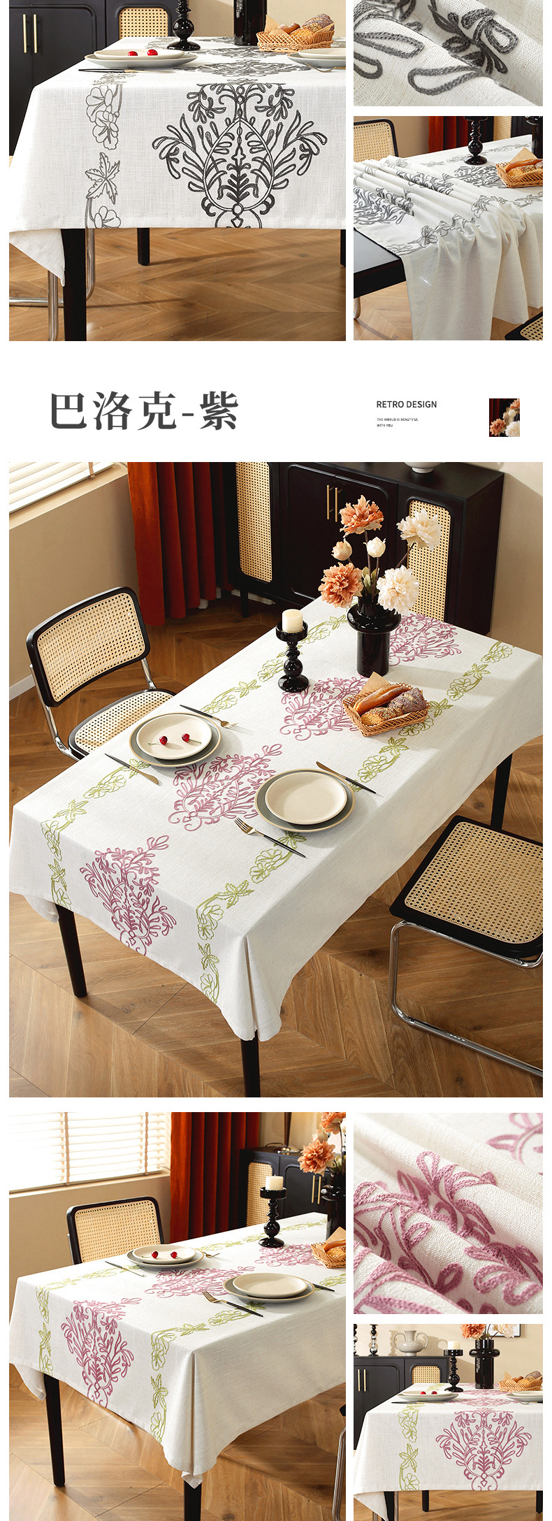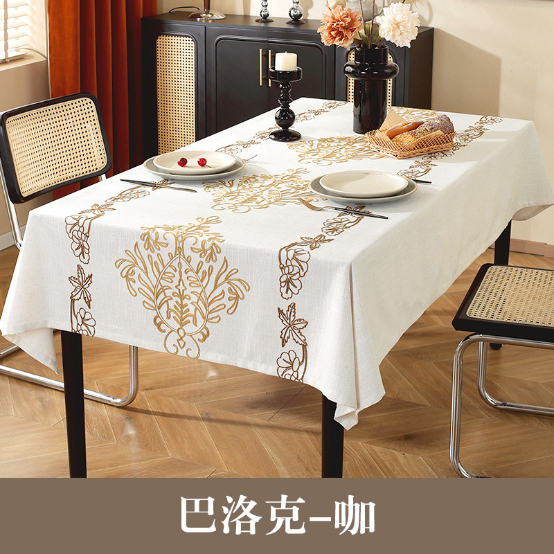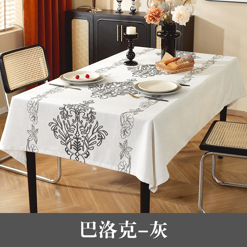 2024年跨境新款桌布现代简约装饰家用茶几巾簇绒绣花餐桌盖布批发