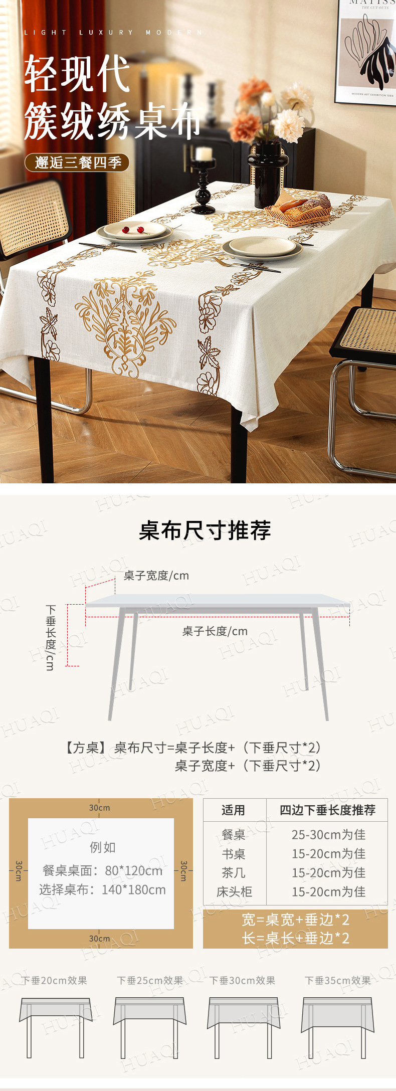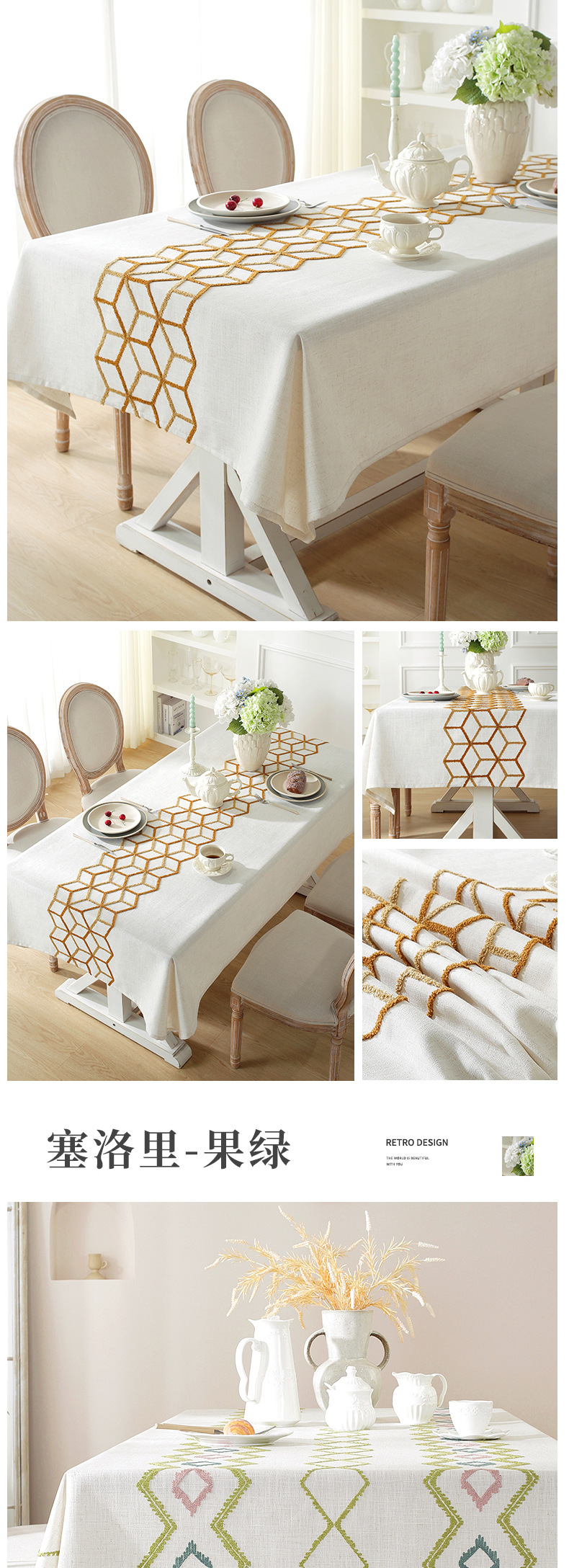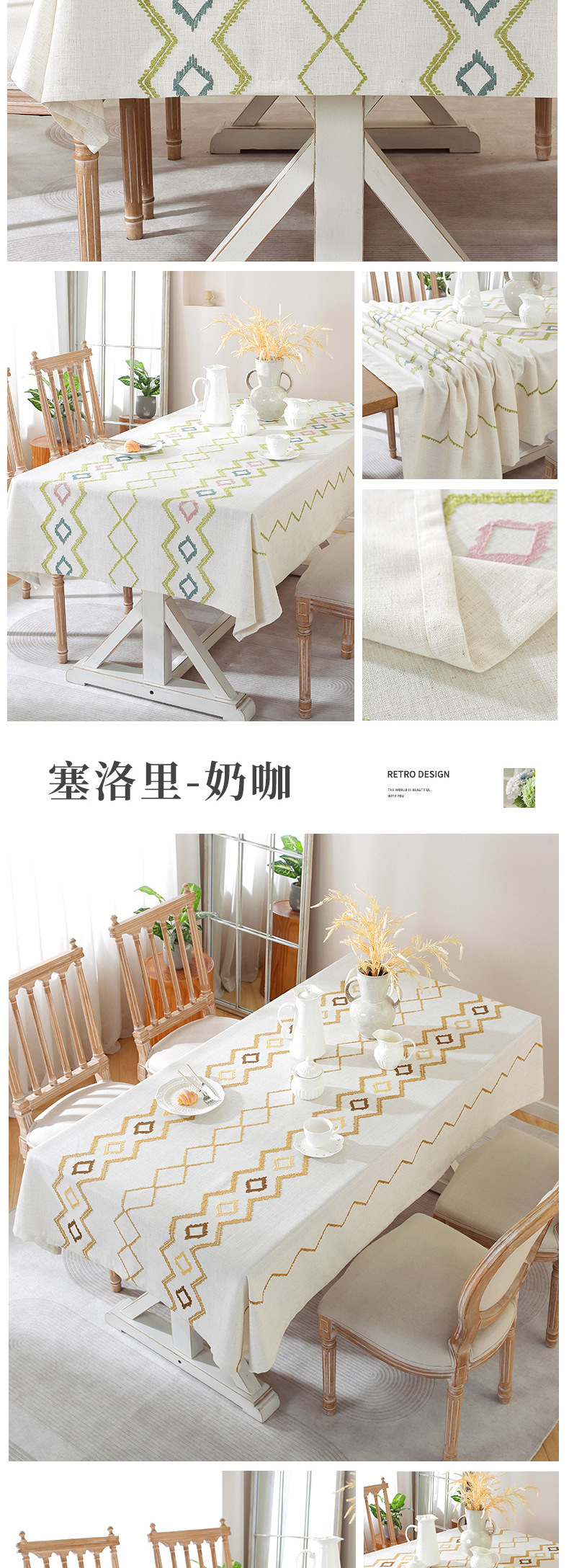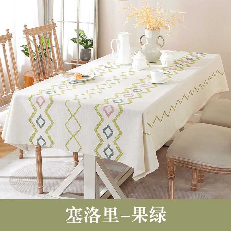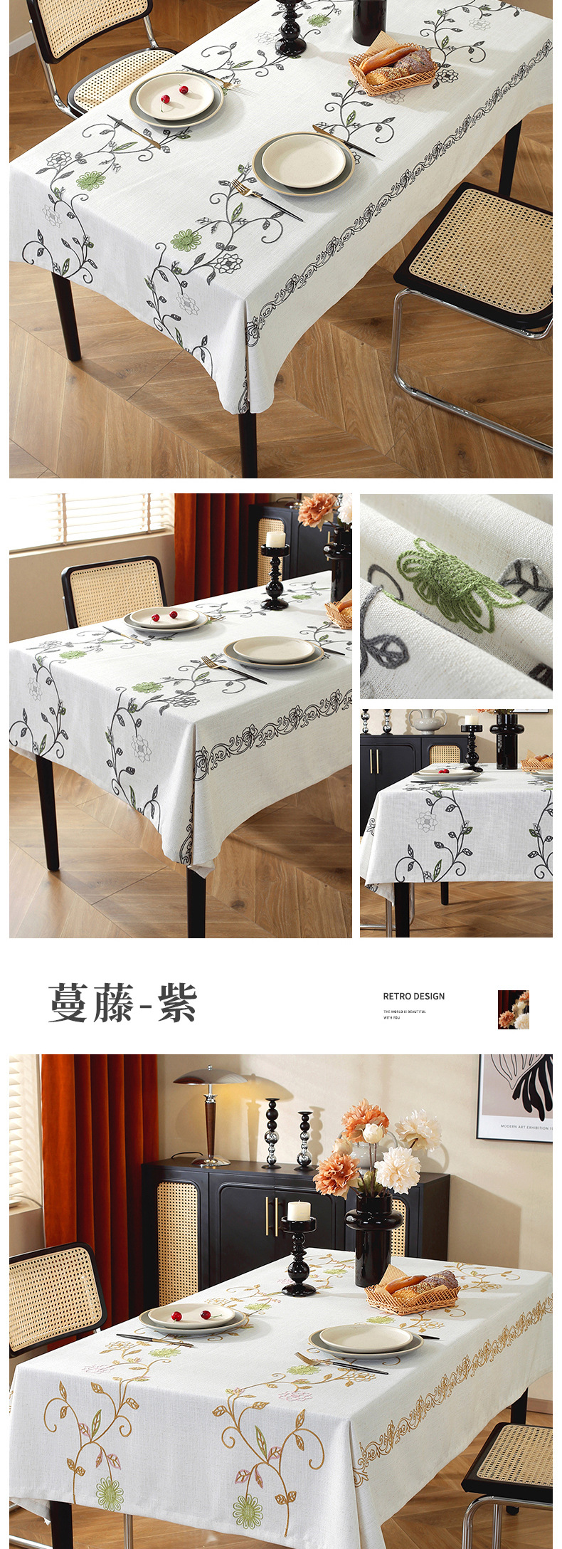 2024年跨境新款桌布现代简约装饰家用茶几巾簇绒绣花餐桌盖布批发