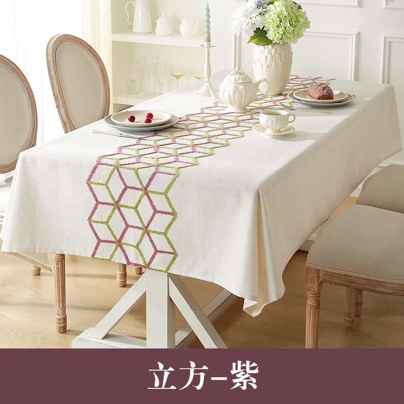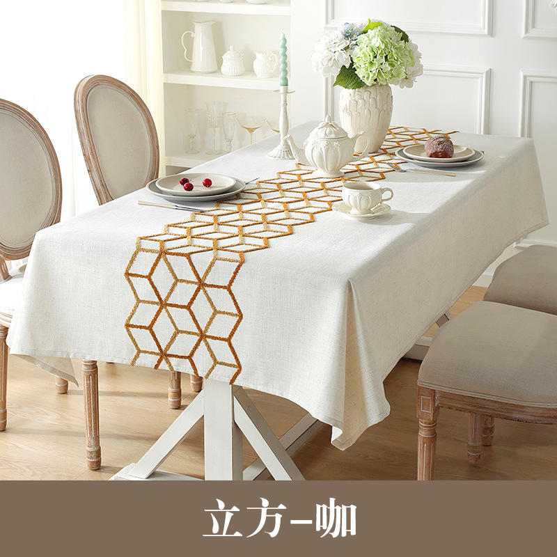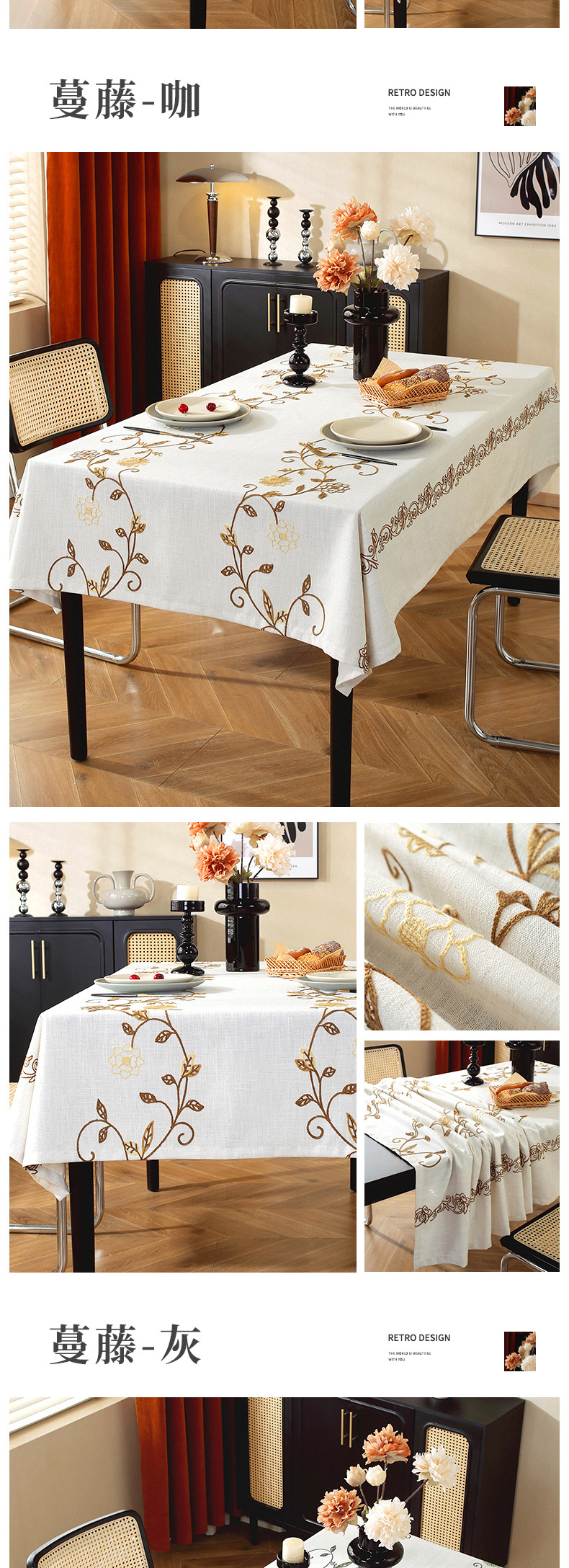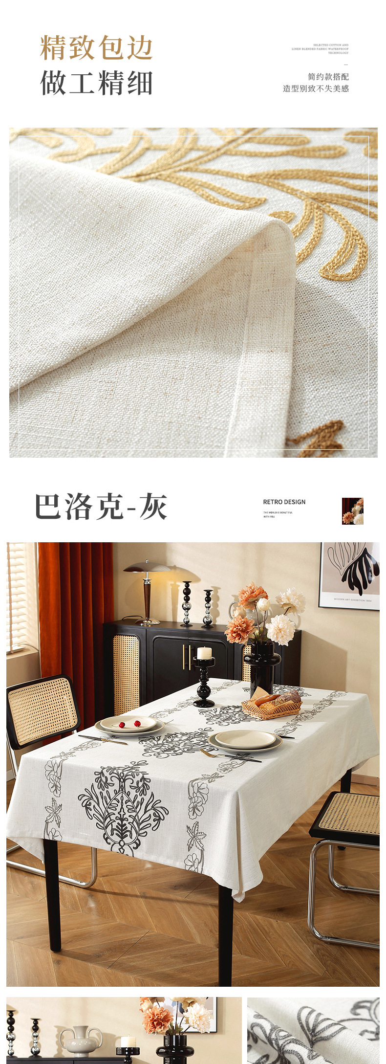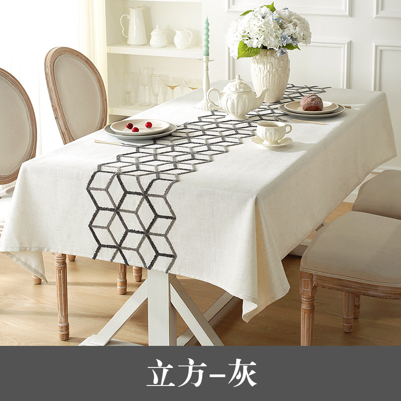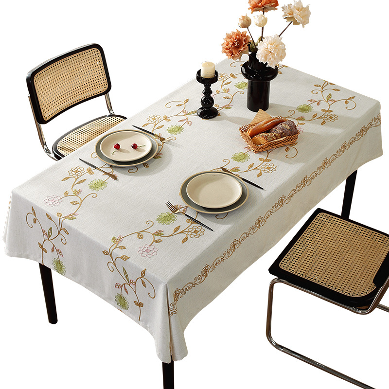2024年跨境新款桌布现代简约装饰家用茶几巾簇绒绣花餐桌盖布批发