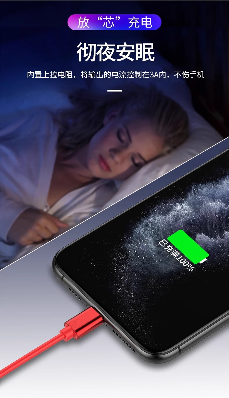 缩数据线快充一拖三手机充电线通用适用安卓typec接车载汽车
