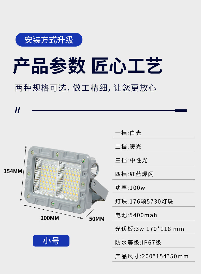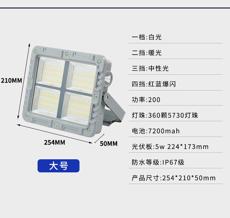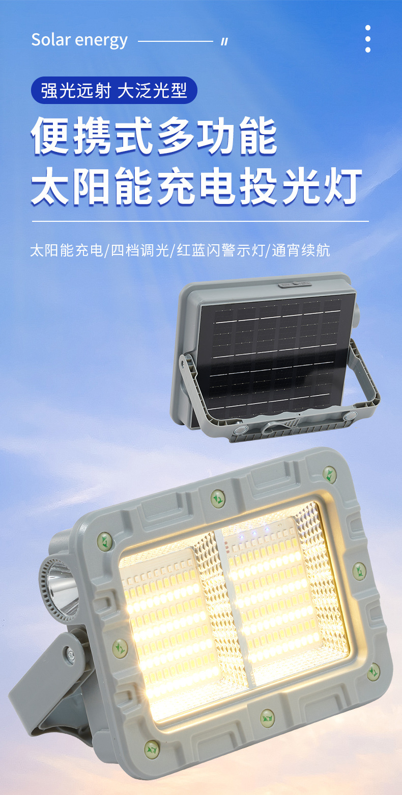 新款多功能太阳能投光灯便捷移户外动露营灯充电摆摊灯停电应急灯