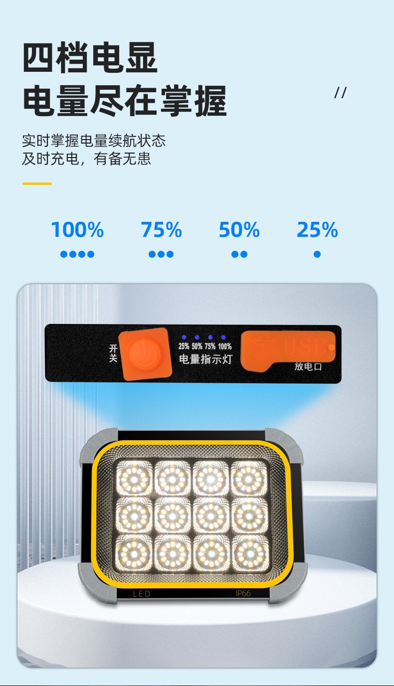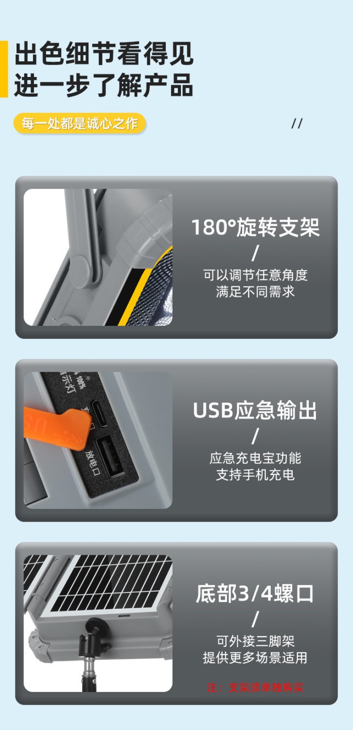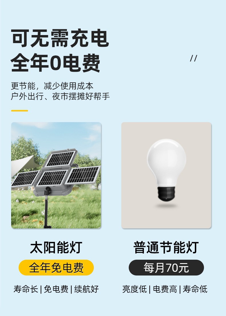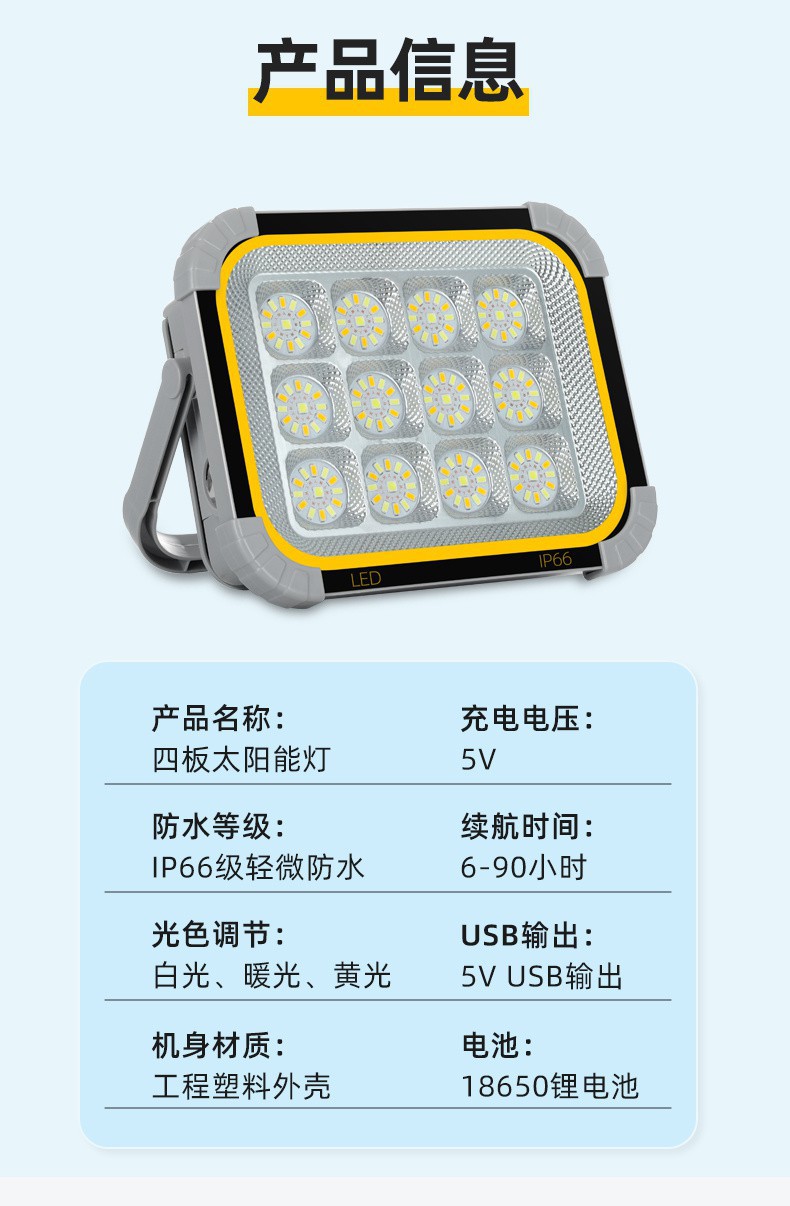jXE新款太阳能灯无线手提投光灯家用超亮工地夜市摆摊户外照明露