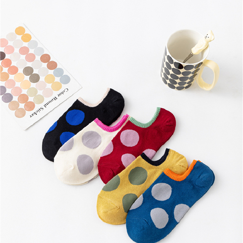 袜子女 春夏新品女士大波点短袜 轻复古撞色大圆点低帮浅口学生袜