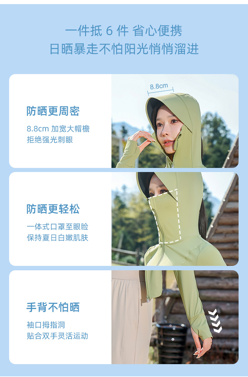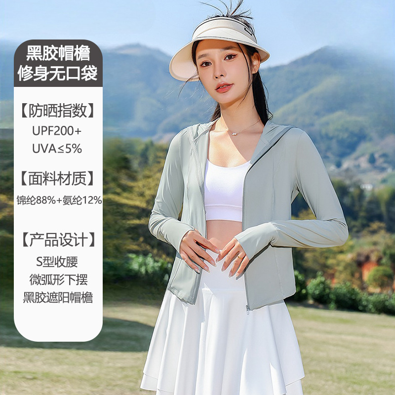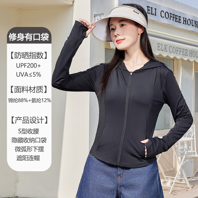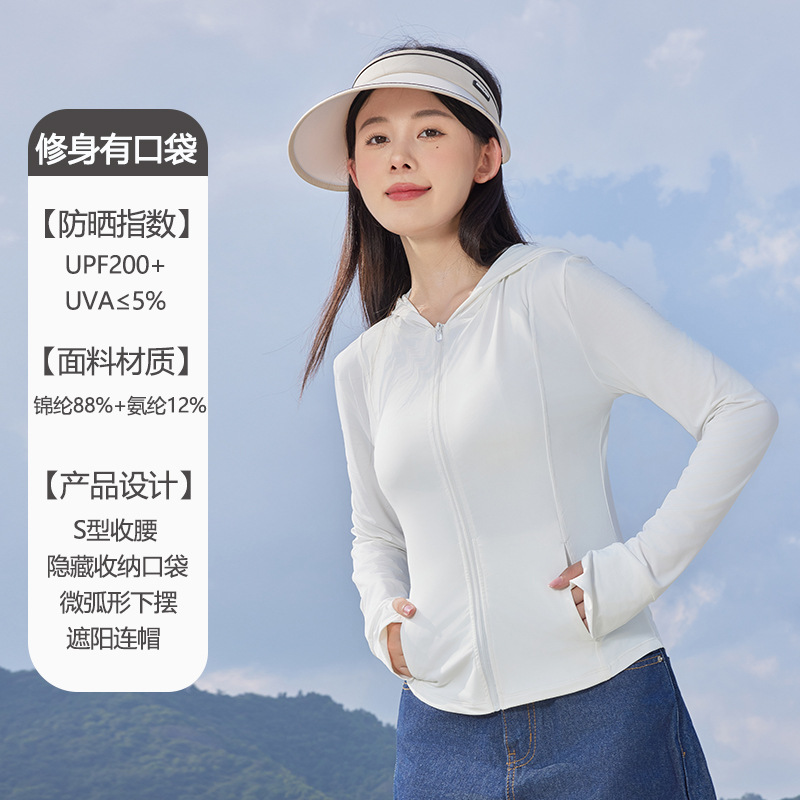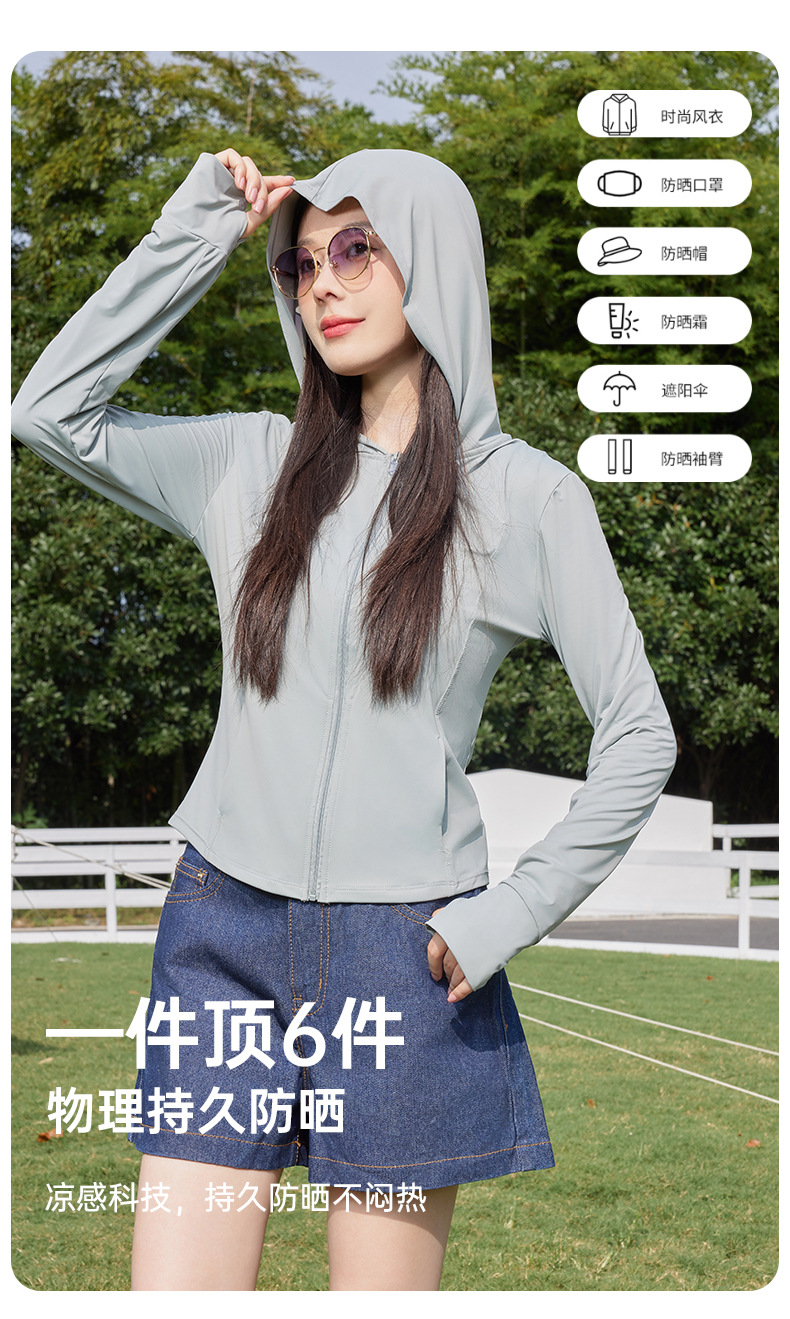 2024新款原纱锦纶修身防晒衣女夏季户外upf200防晒服连帽皮肤衣