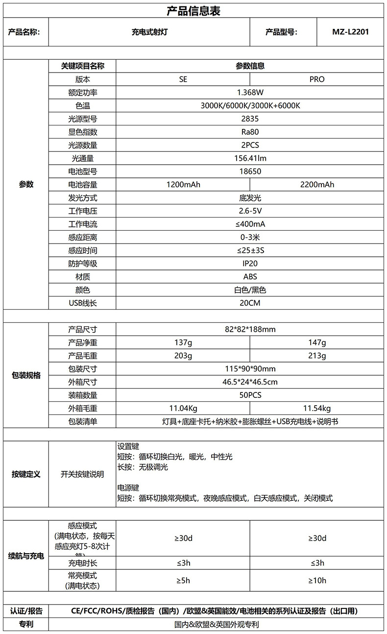 外贸专供充电免布线室内墙壁灯射灯 智能led人体感应灯遥控照画灯