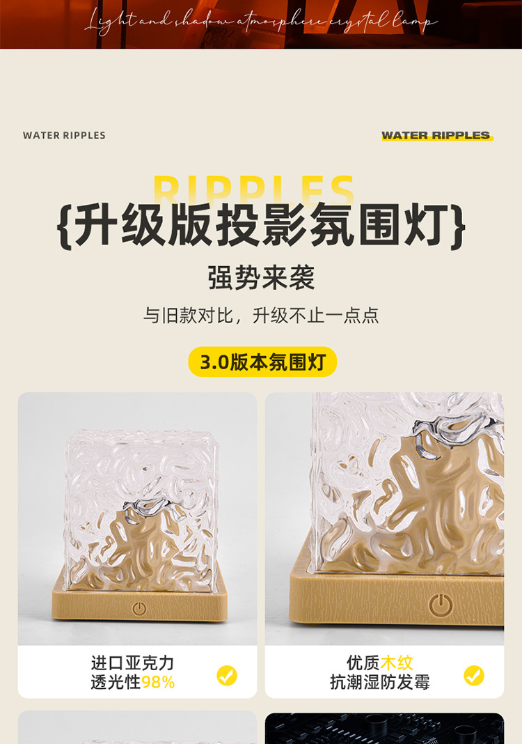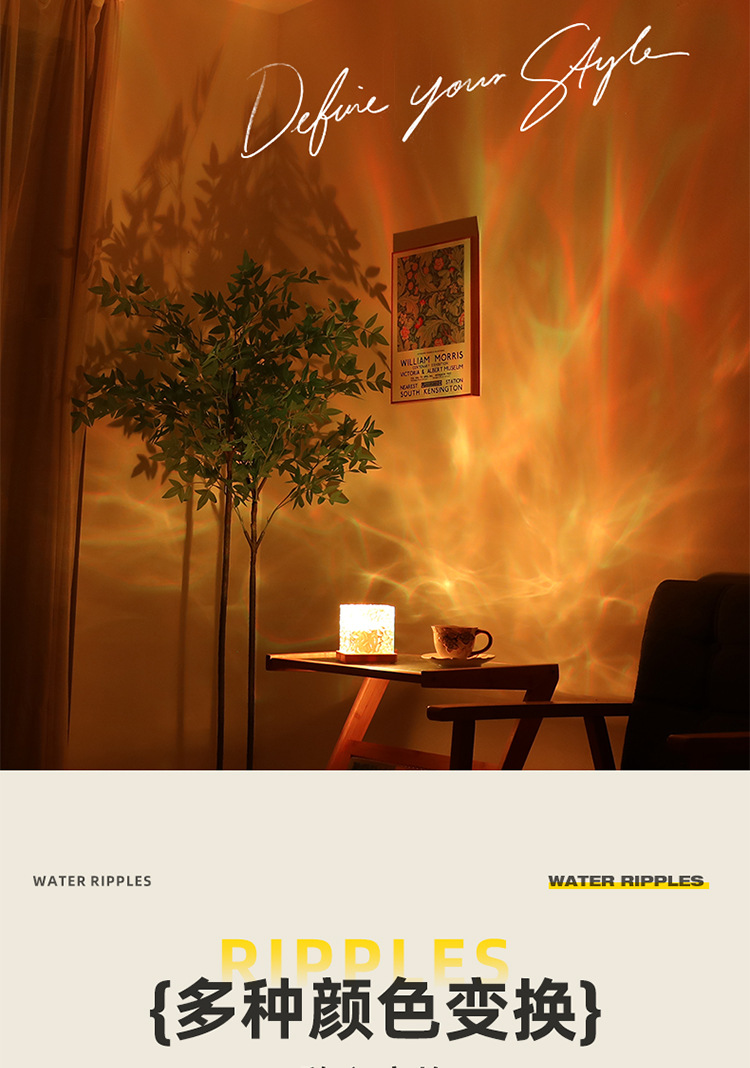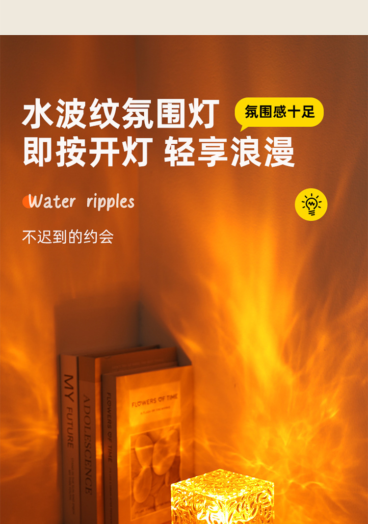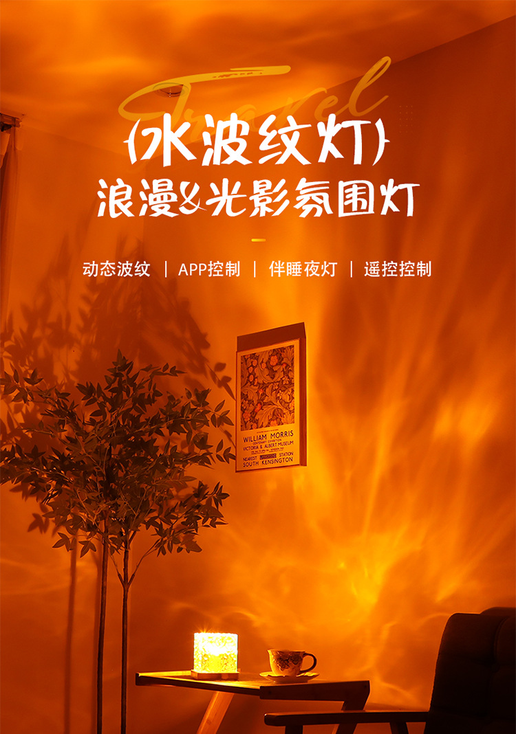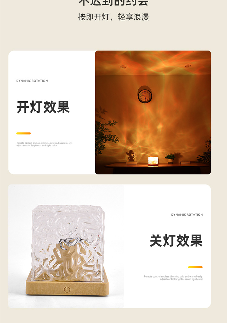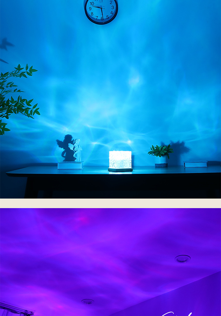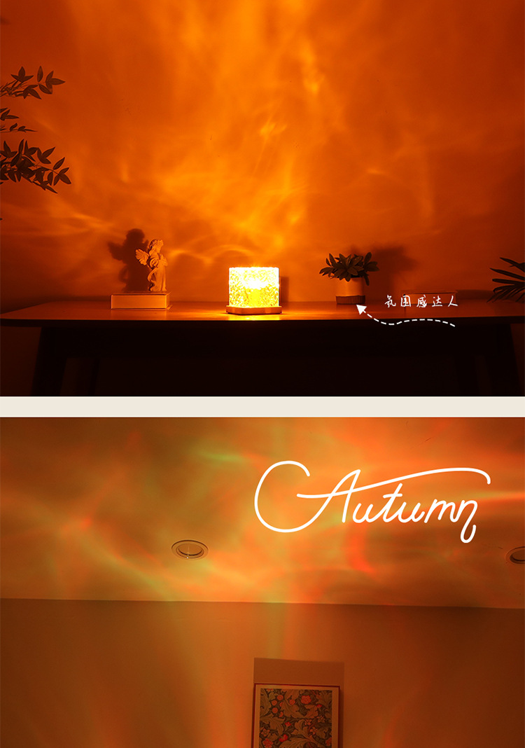 外贸专供方形水波纹灯创意床头火焰蓝牙小夜灯动态浪漫星空投影灯