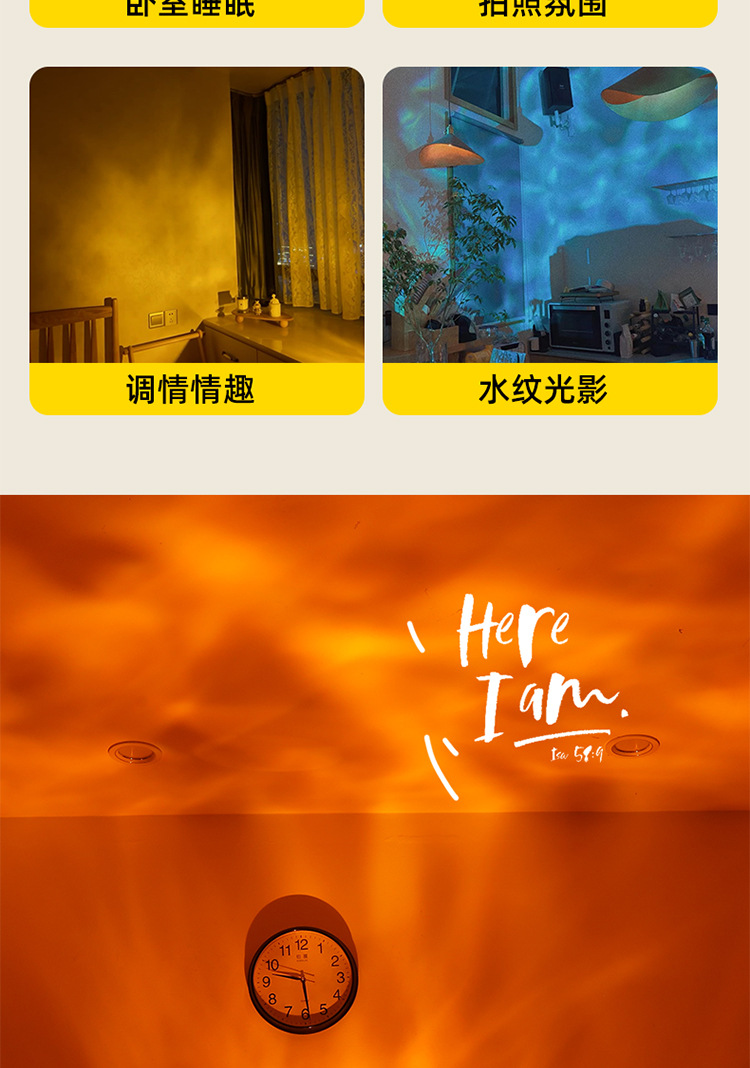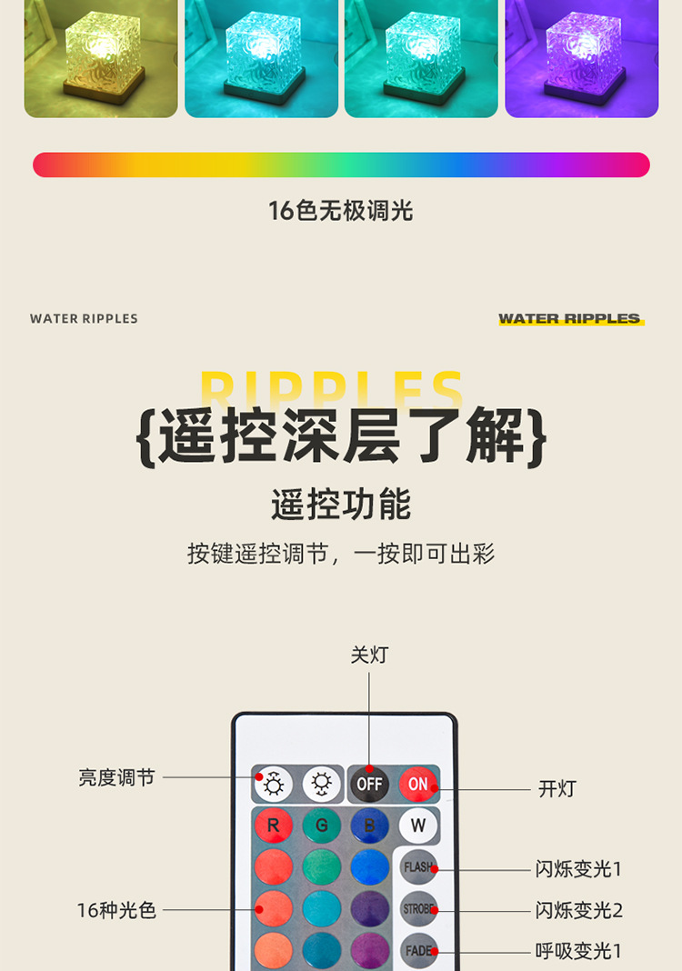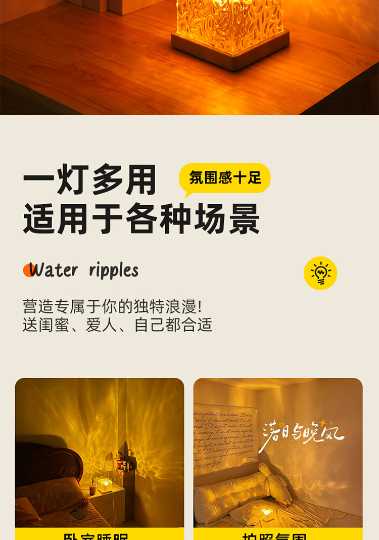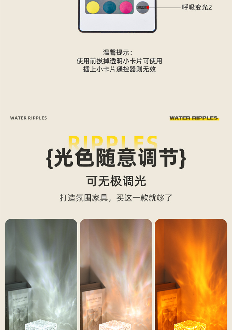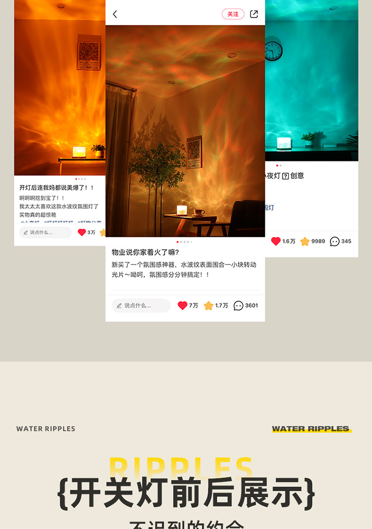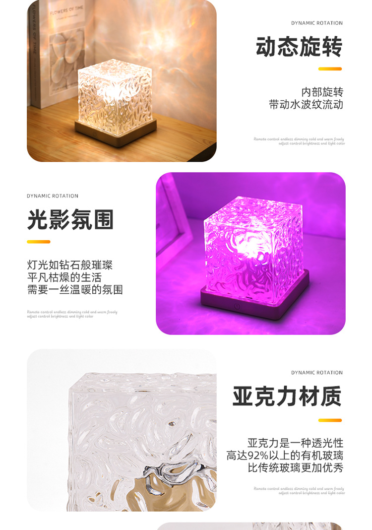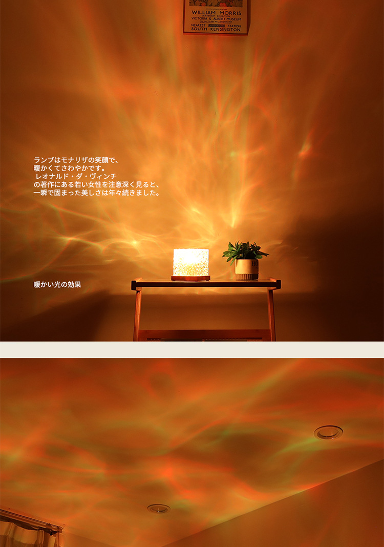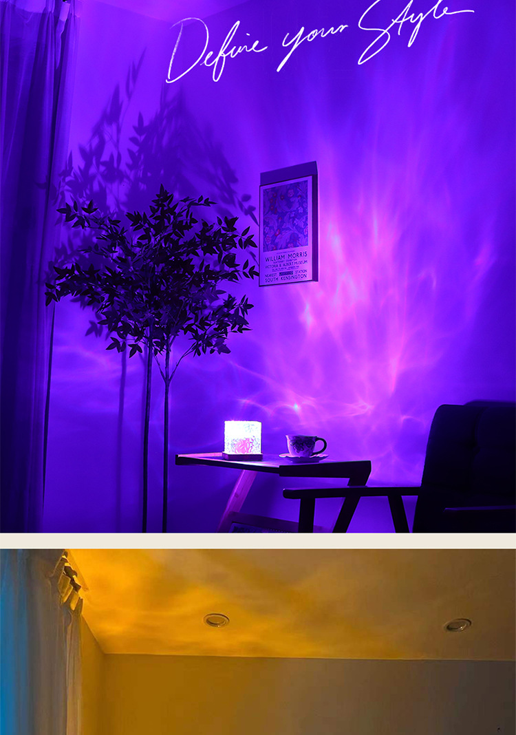外贸专供方形水波纹灯创意床头火焰蓝牙小夜灯动态浪漫星空投影灯