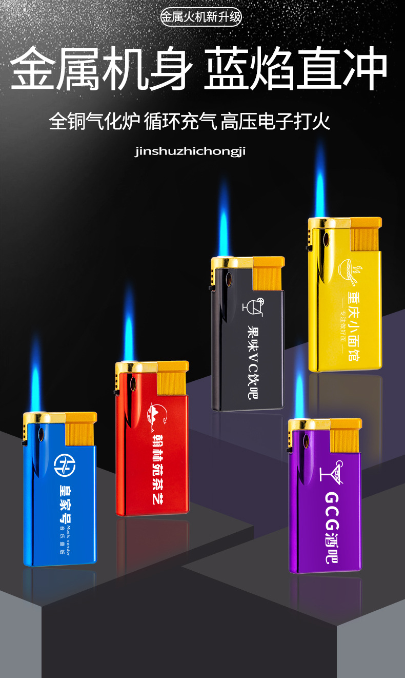 一次性打火机刻字广告印logo订 制金属防风加厚防爆铁皮直冲蓝焰