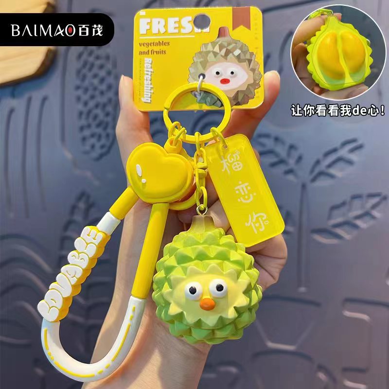 百茂原创木雕风蔬果系列钥匙扣创意搞怪爆眼桃子山竹钥匙链包挂件