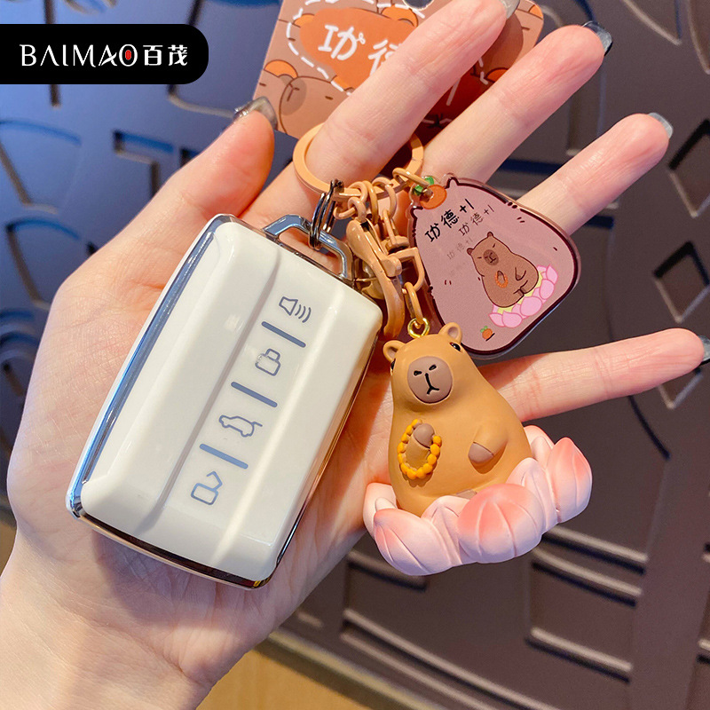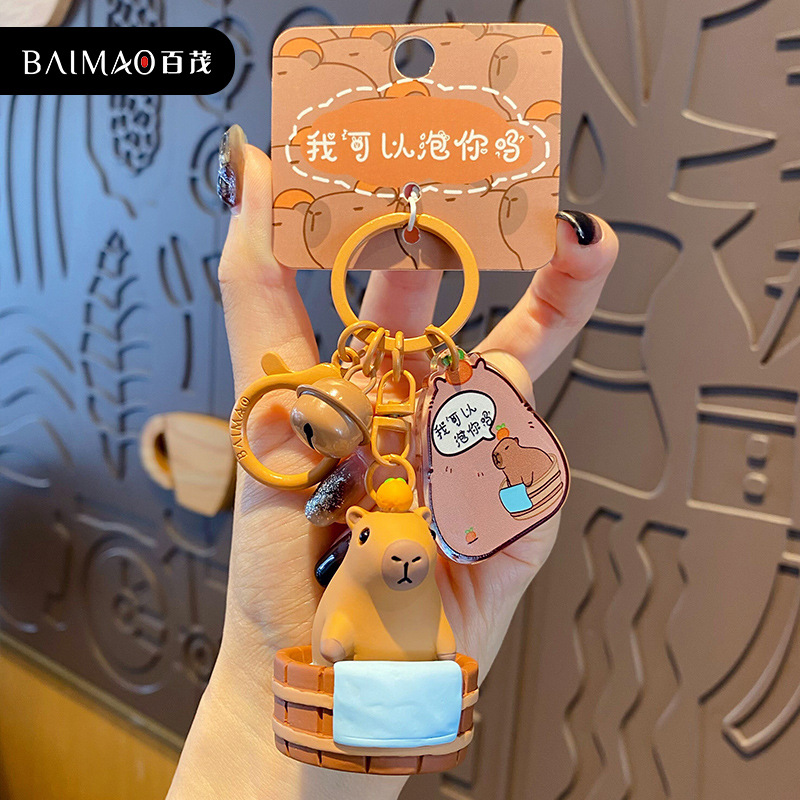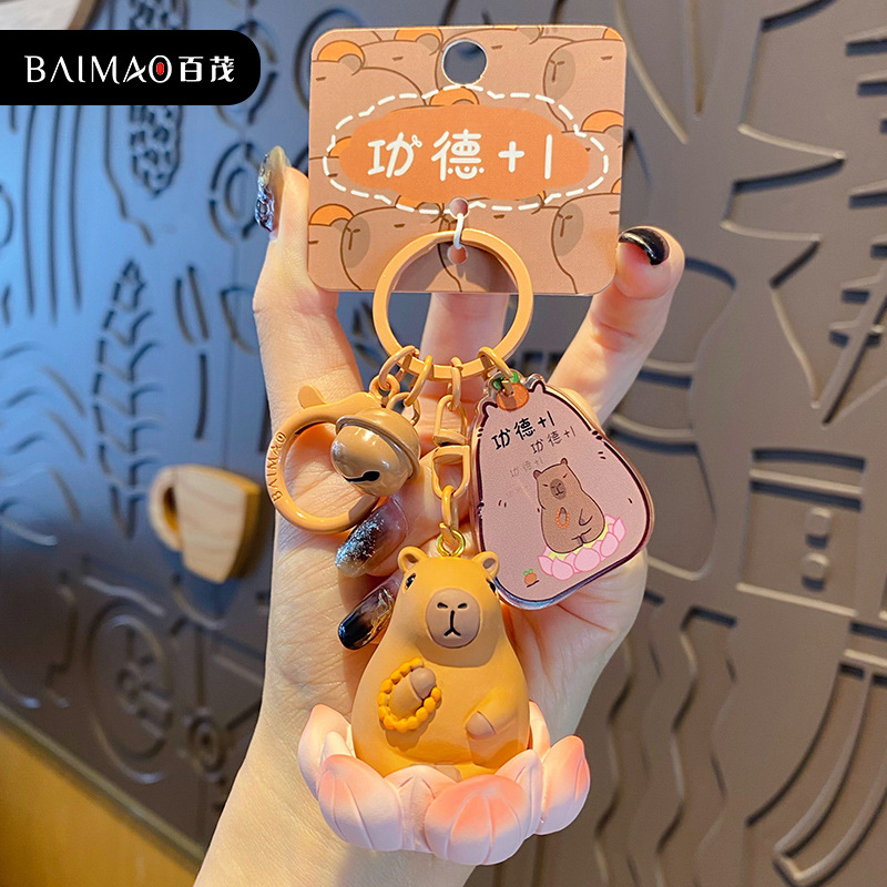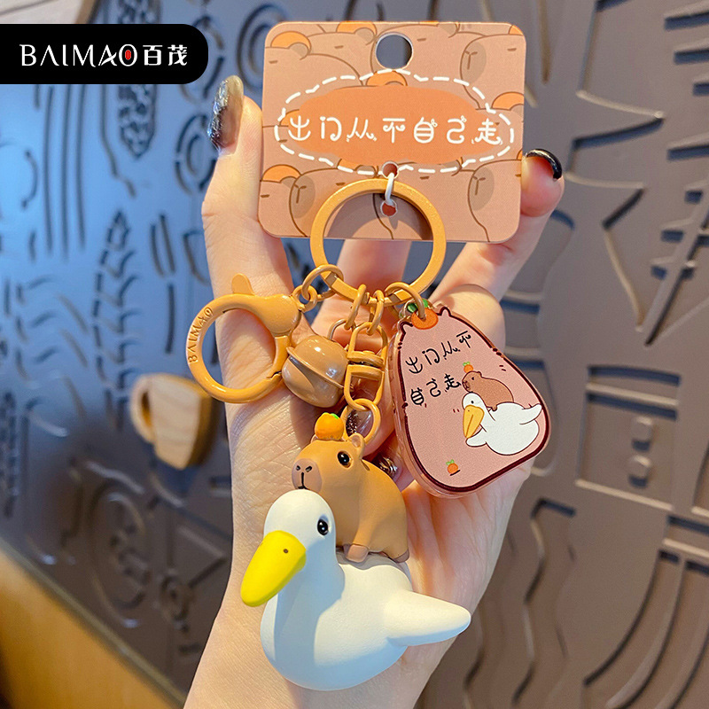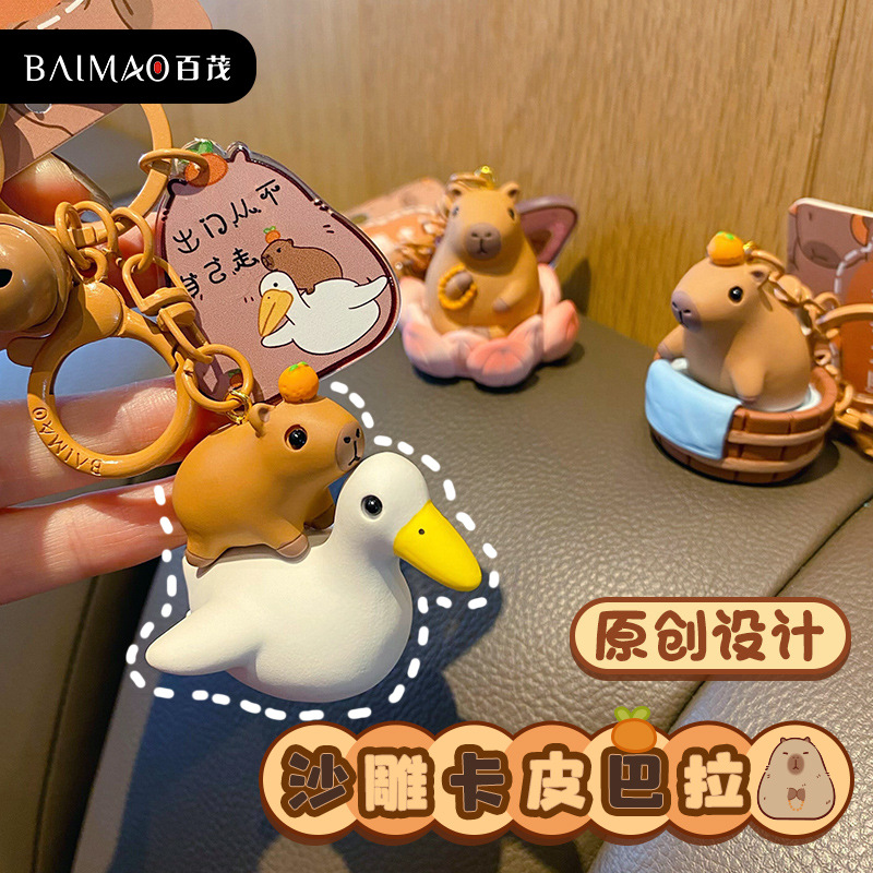 百茂原创网红卡皮巴拉钥匙扣女可爱呆萌树脂海鸥水豚公仔书包挂件