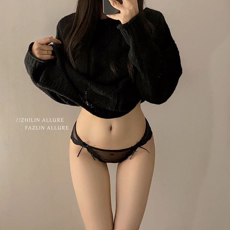 欧美网纱少女内裤女士低腰蕾丝边蝴蝶结纯欲性感透气内裤女