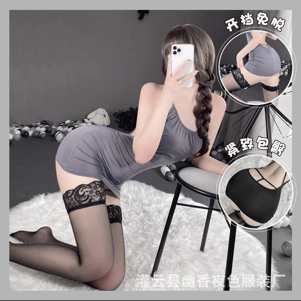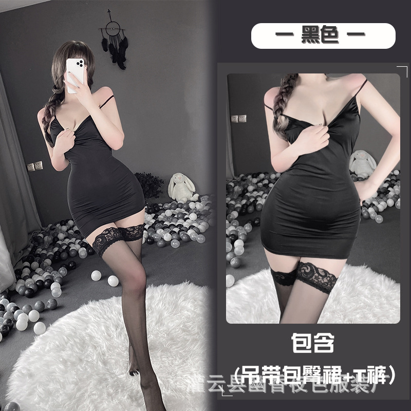 林林婷情趣内衣深V连体吊带睡裙收腰抽绳包臀夜店短裙诱惑装9065