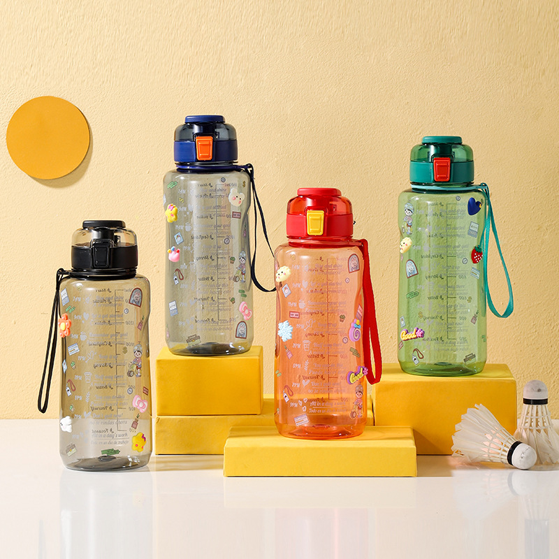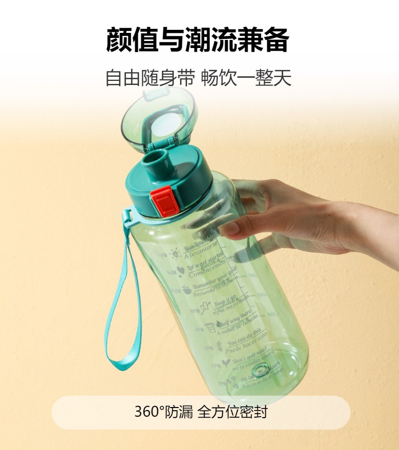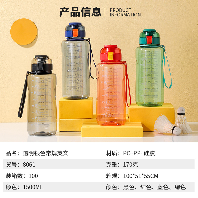 亚马逊 1500ML大容量新款太空杯刻度健身男女运动手提便携透明水