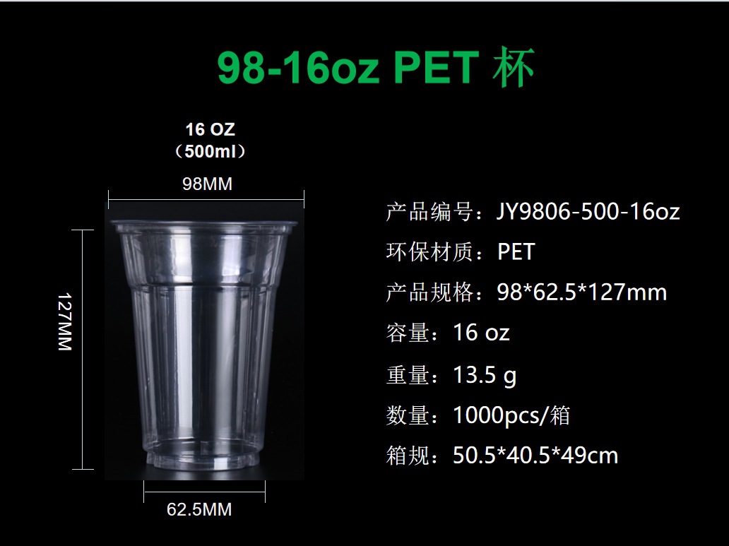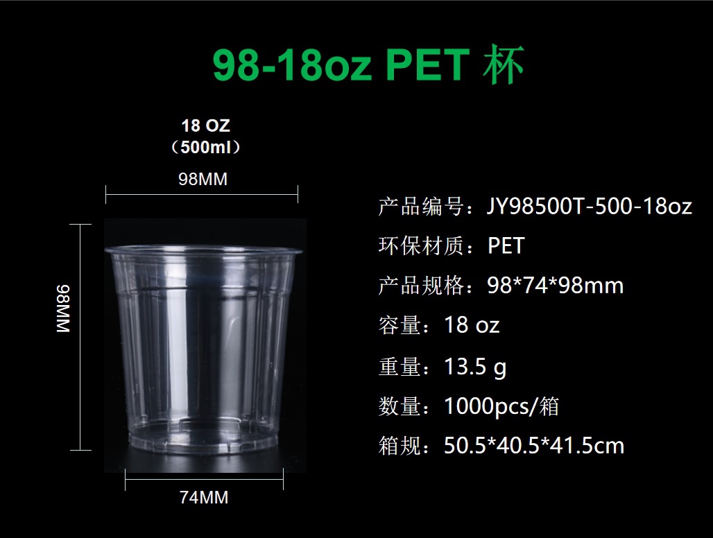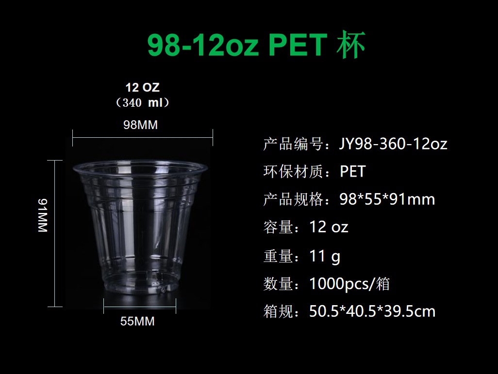 98口径透明一次性咖啡杯奶茶杯 柠檬茶外卖打包杯PET冷饮杯带盖