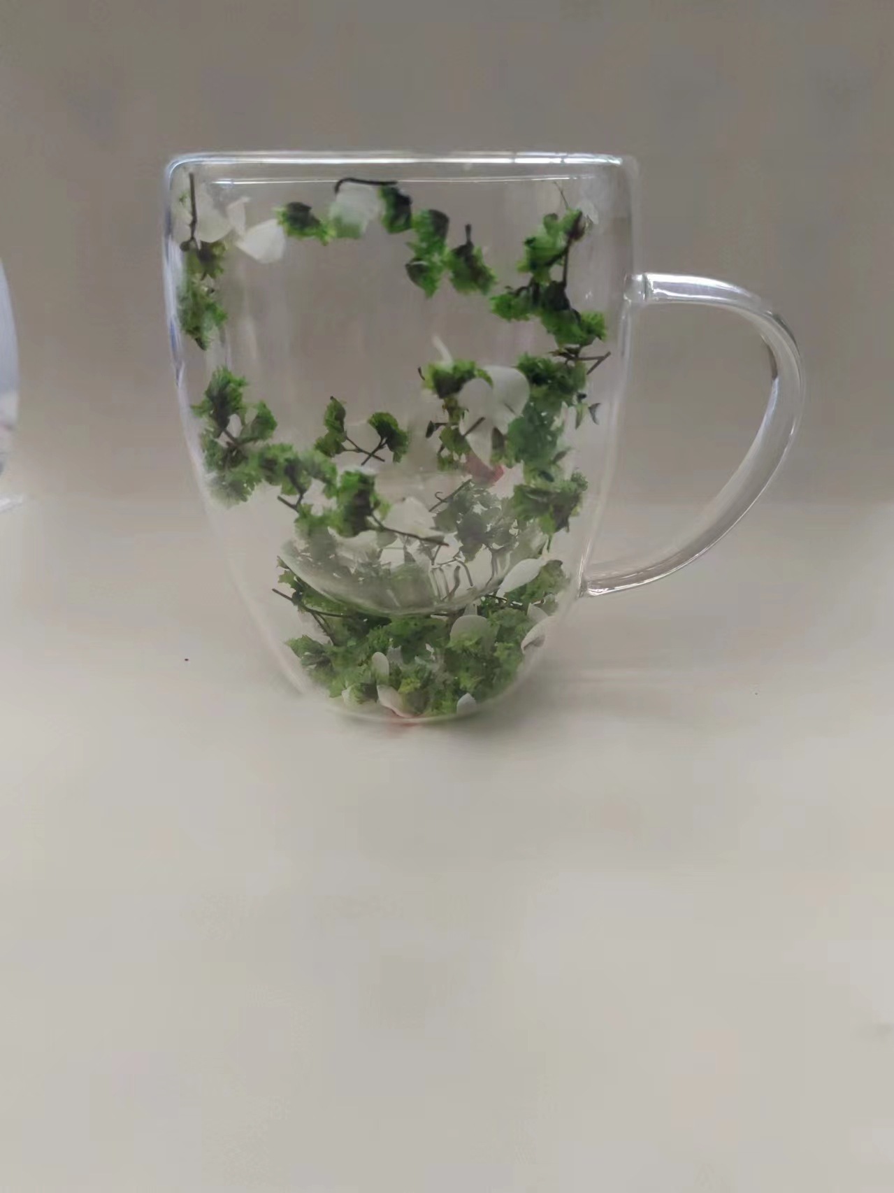 双层玻璃流沙花杯高硼硅玻璃双层杯早餐牛奶咖啡杯家用喝水杯子