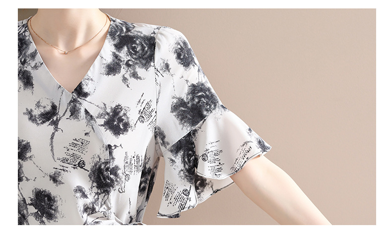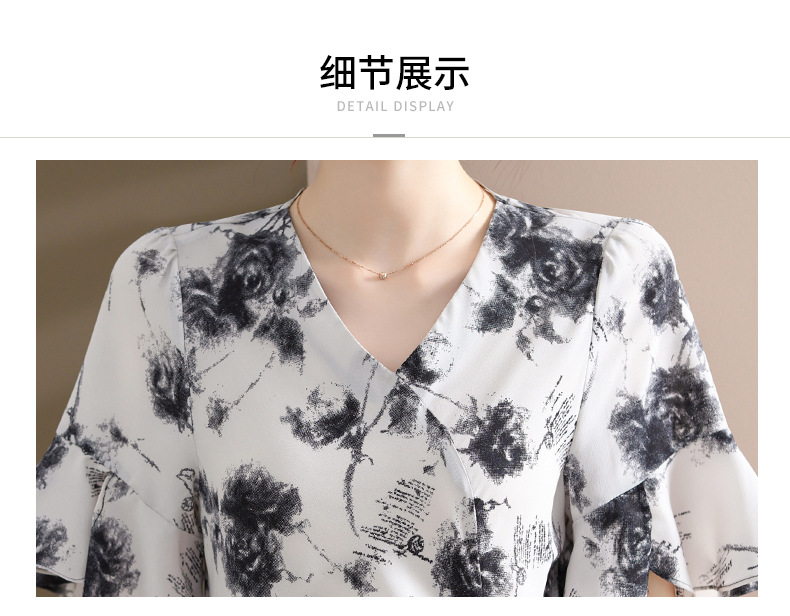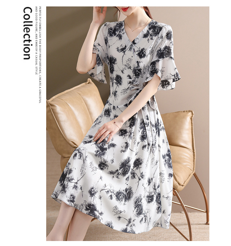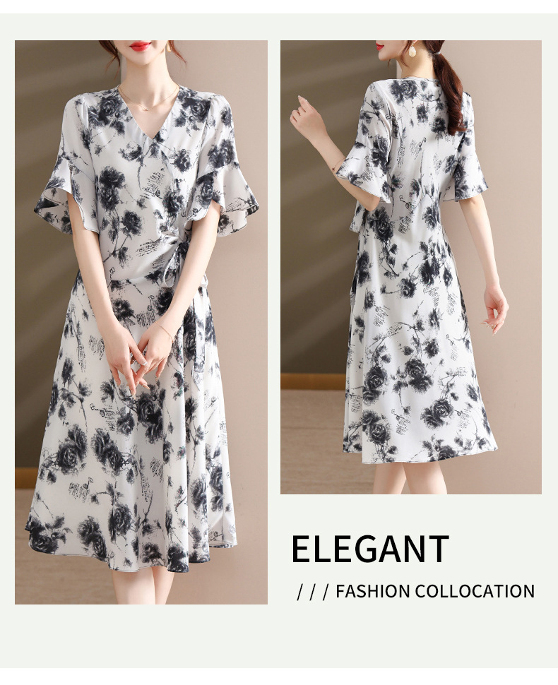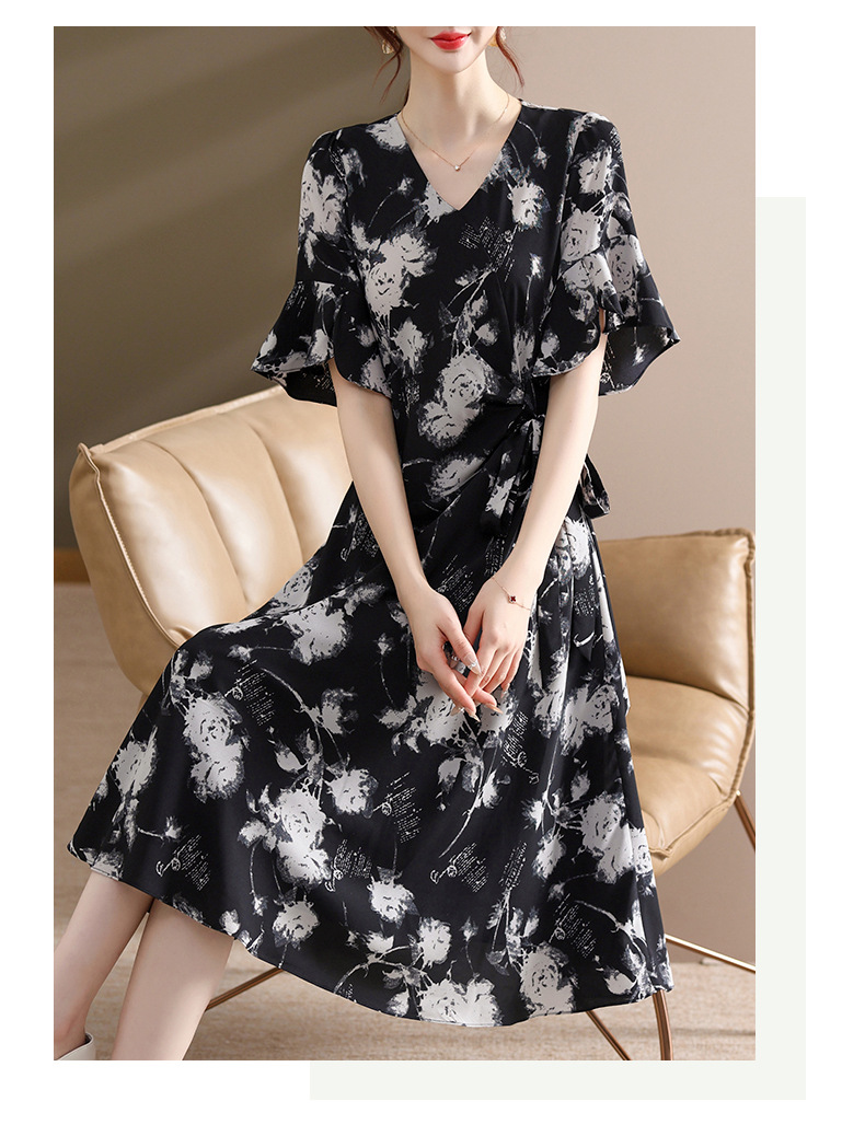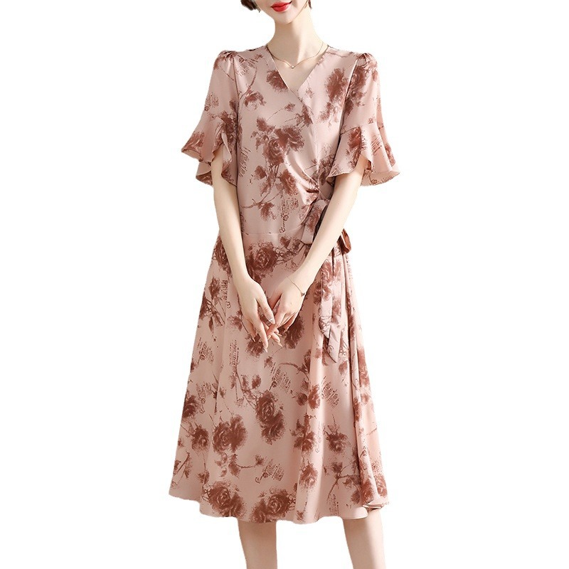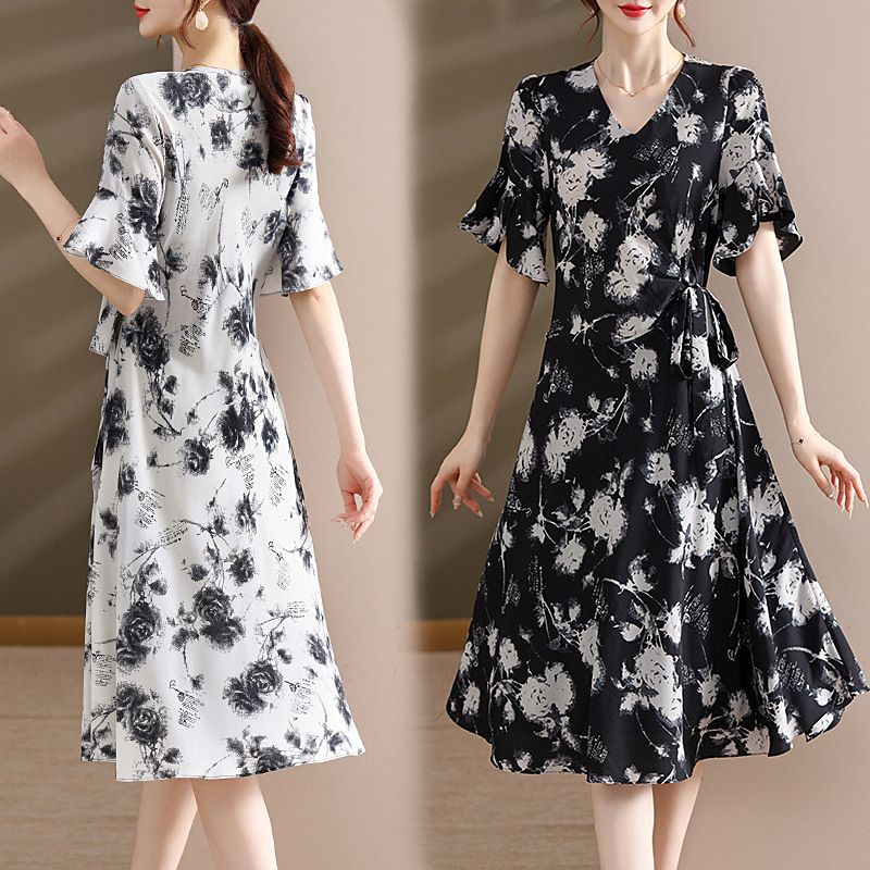 气质优雅连衣裙夏季新款V领系带妈妈装时尚减龄显瘦中老年女装潮