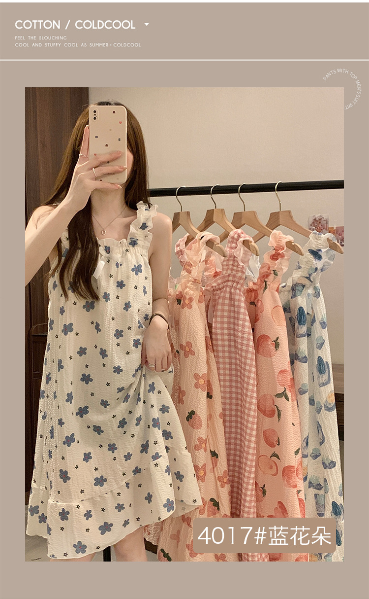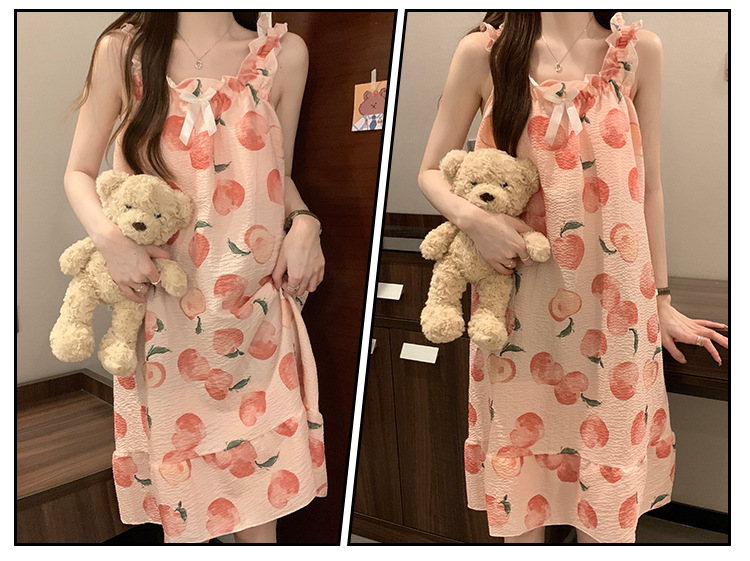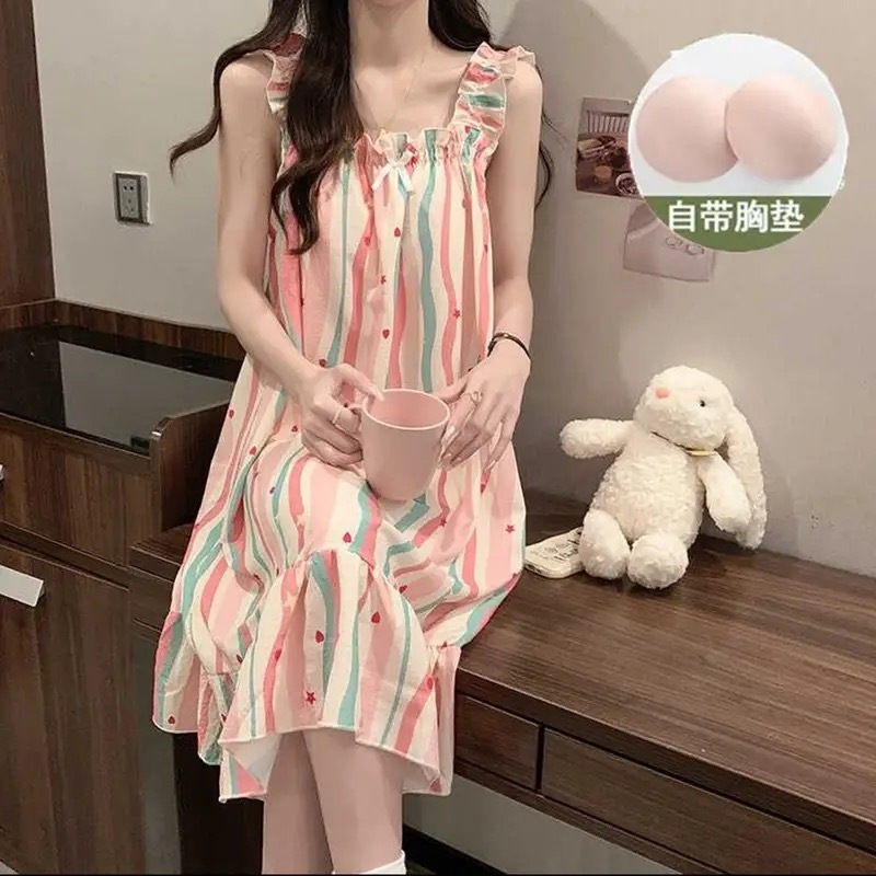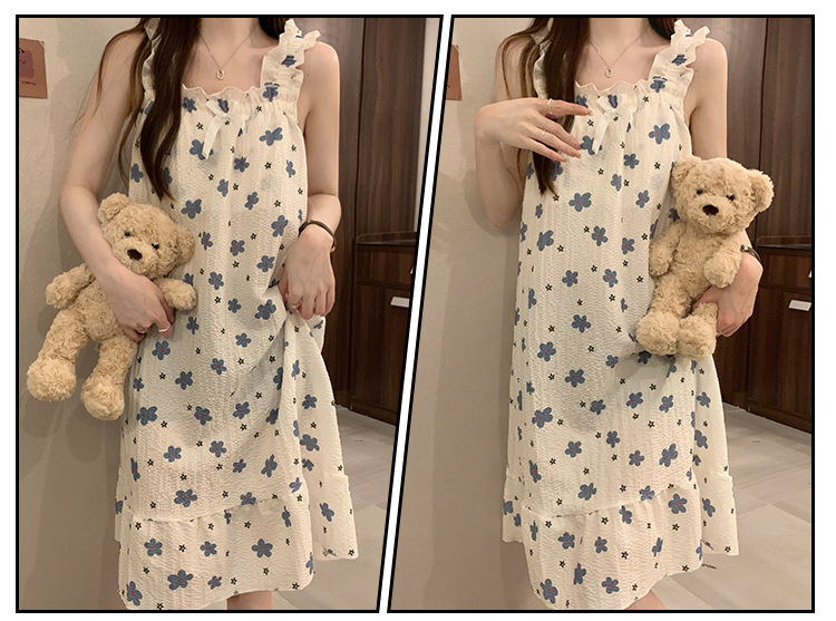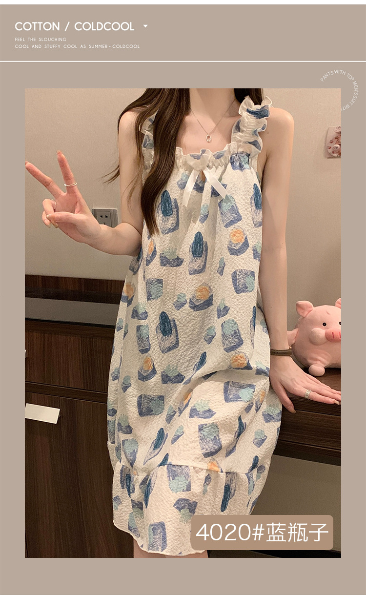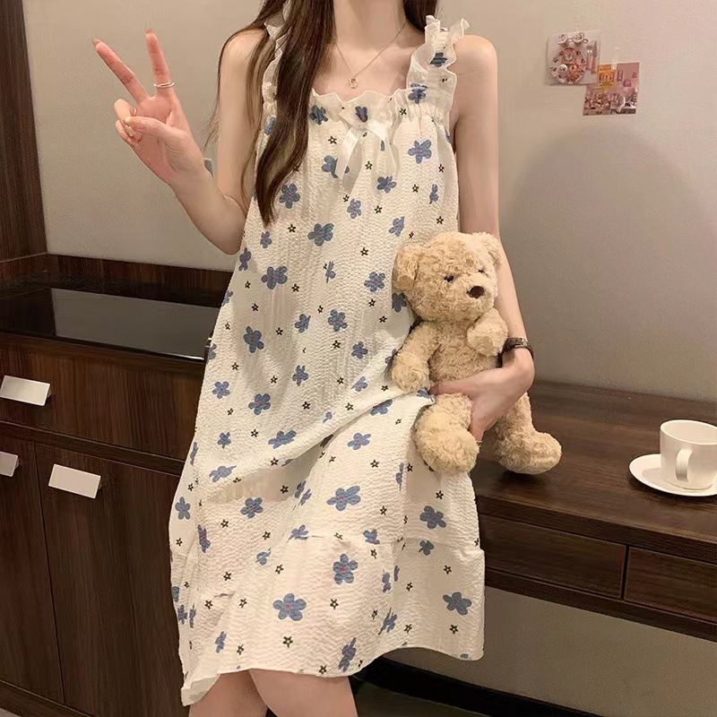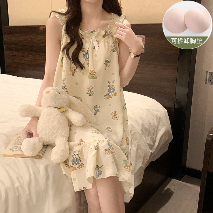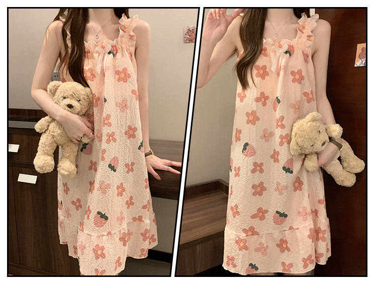 可拆卸带胸垫睡裙夏季女性感吊带薄款甜美连体泡泡棉可外穿家居服