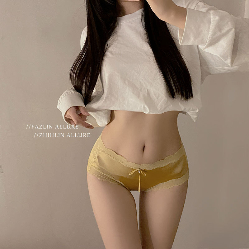 轻奢缎面冰丝性感内裤女士蕾丝边少女日系性感内裤女