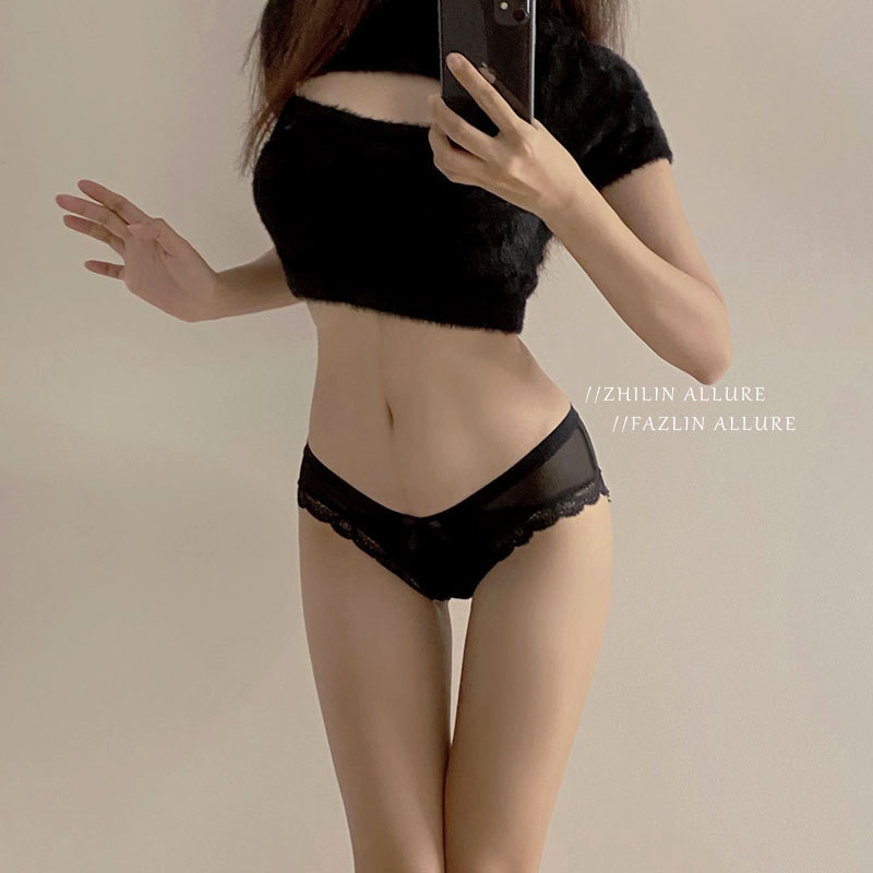 性感交叉网纱内裤女士低腰蕾丝边少女纯欲甜美三角内裤女