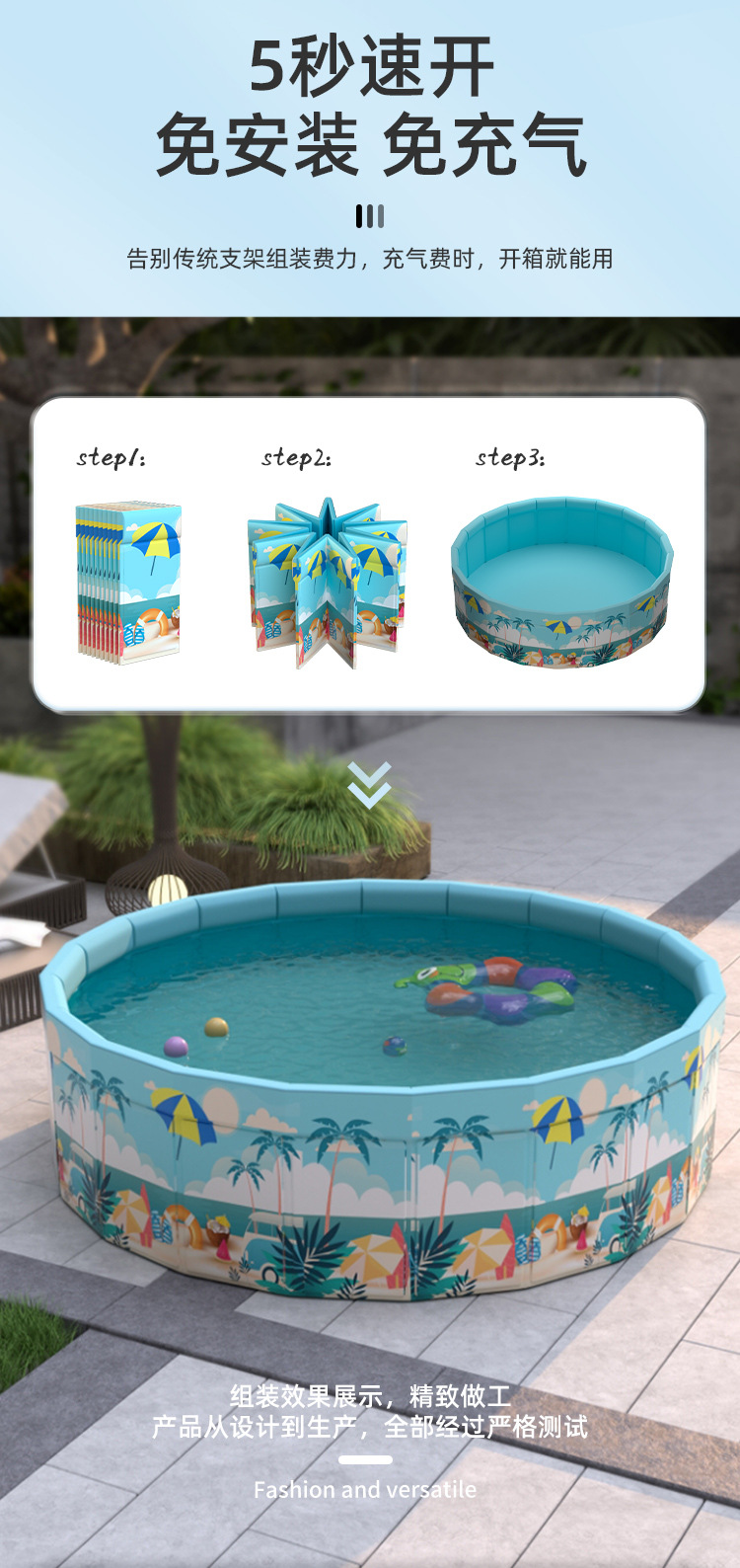 跨境免充气儿童折叠游泳池高密度板家用大号小孩戏水池宝宝玩具池