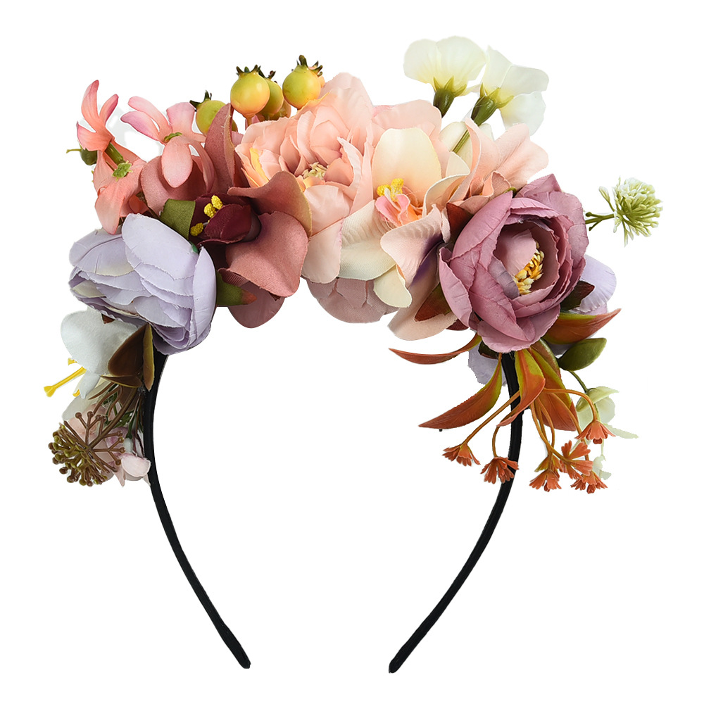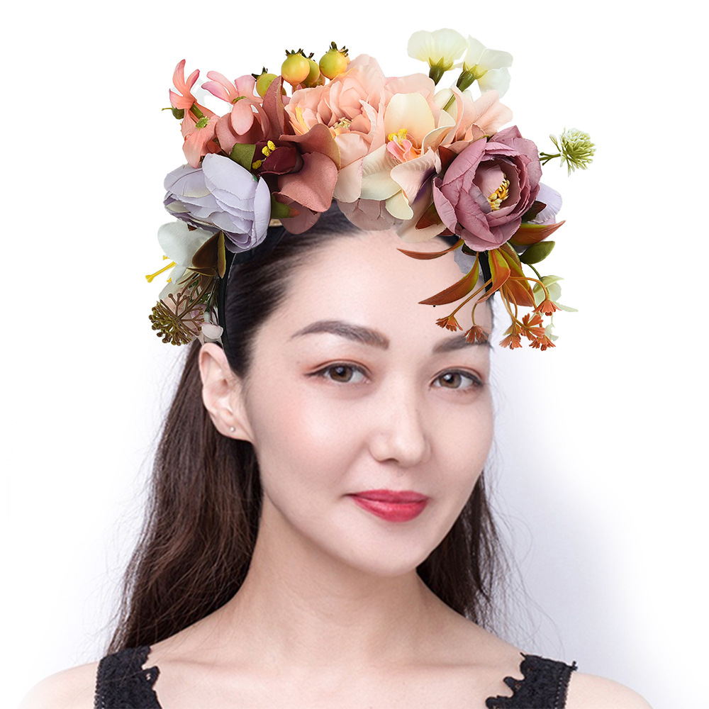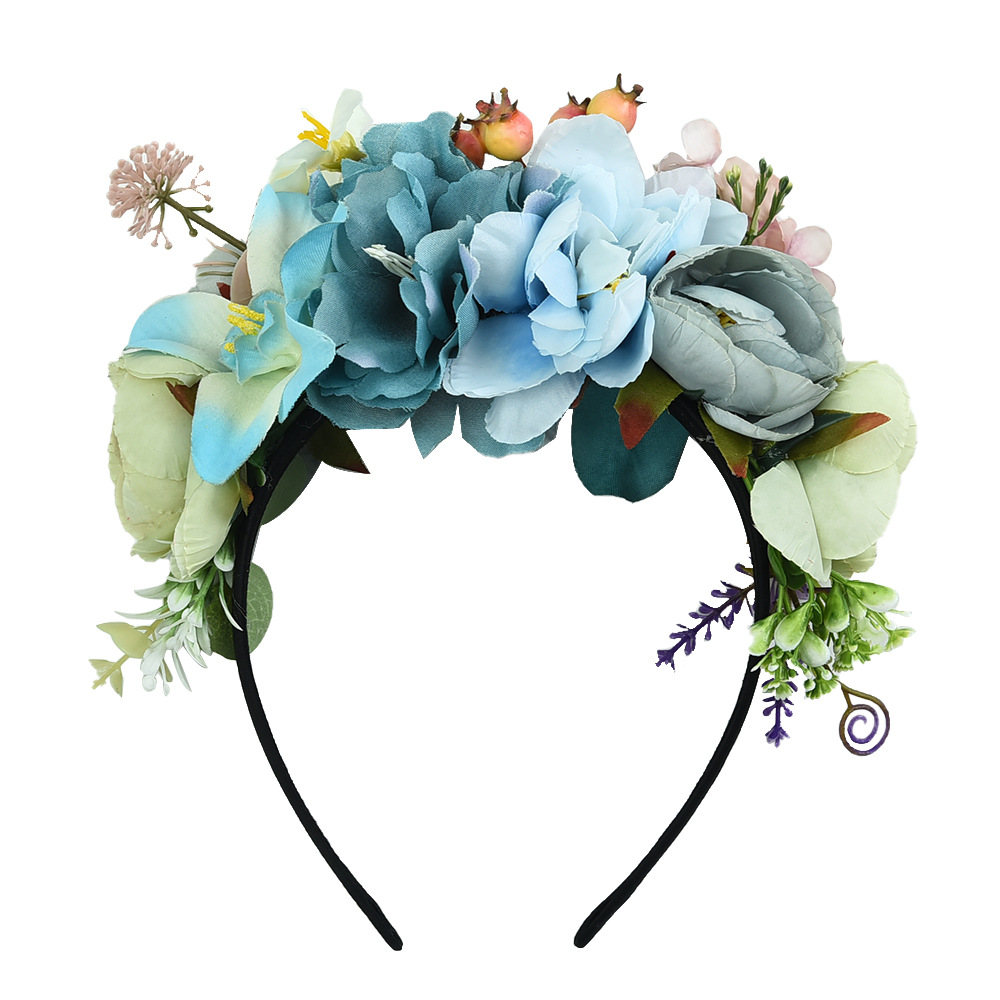 跨境新款派对仿真花发箍森系超仙气质花环头箍写真拍照头饰簪花