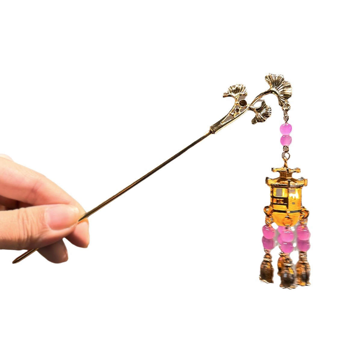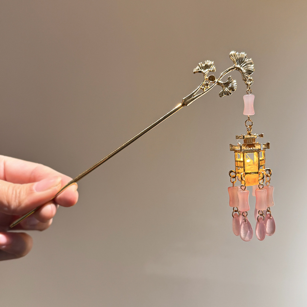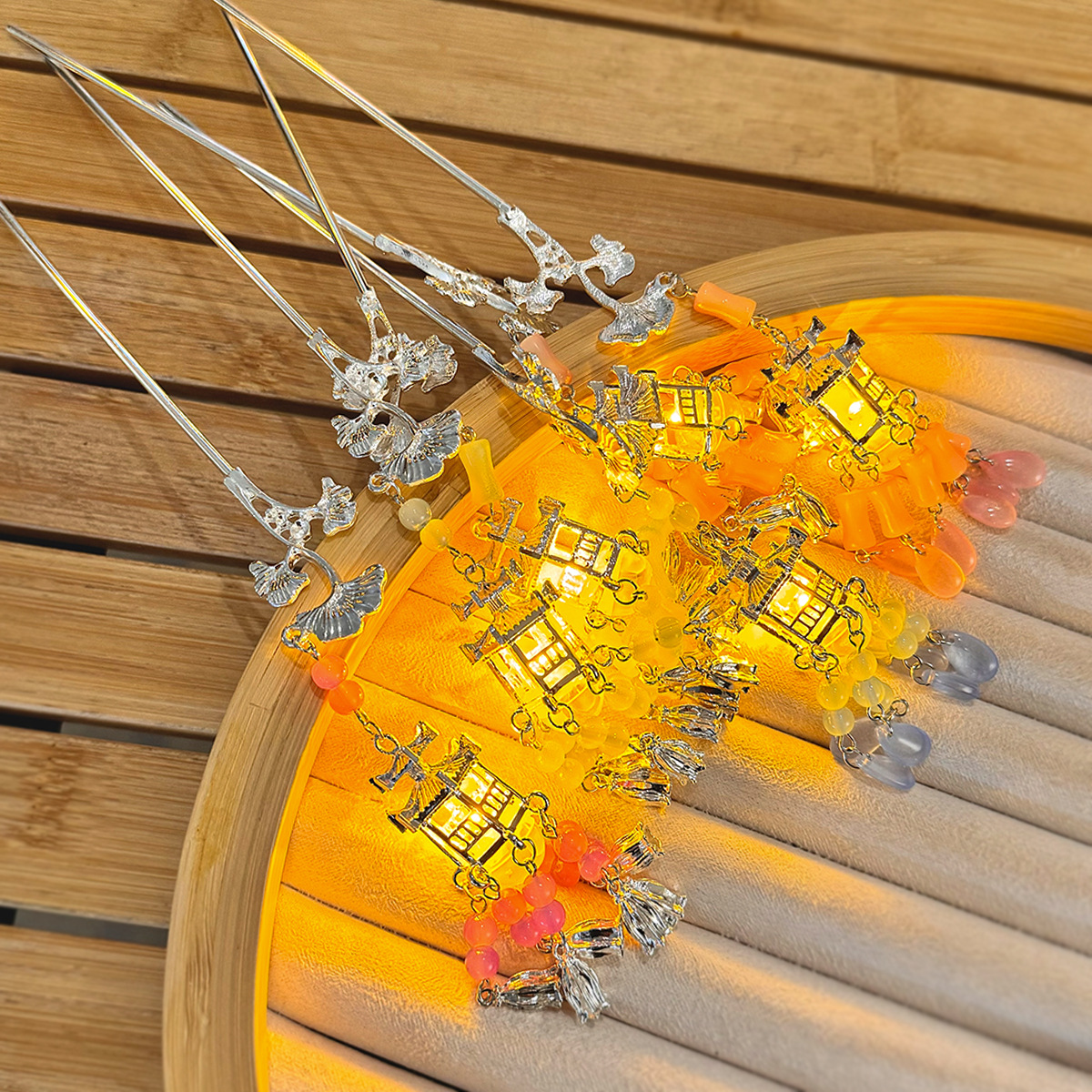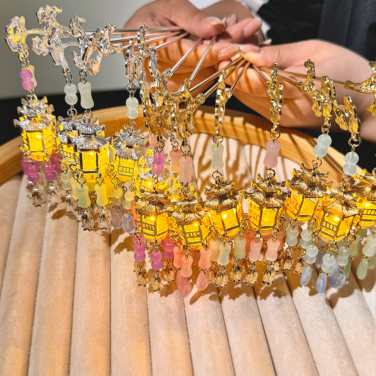 发光发簪古风高级感流苏凉亭宫灯簪子盘发簪花发钗宫廷汉服发饰