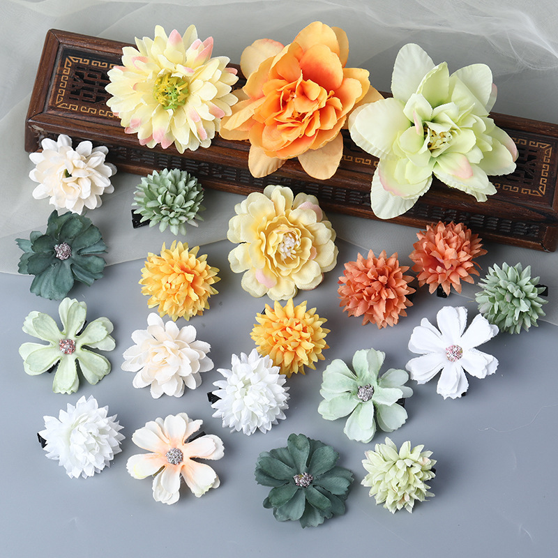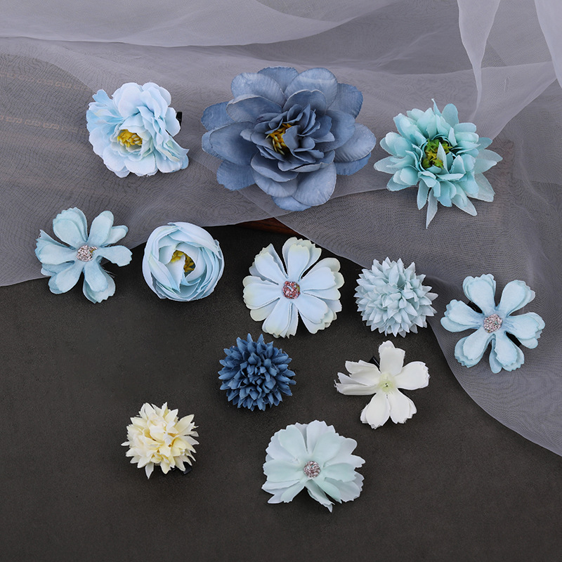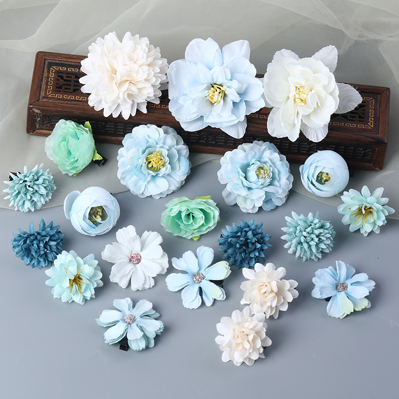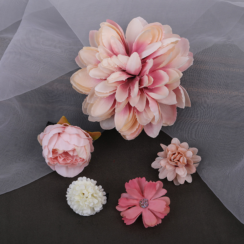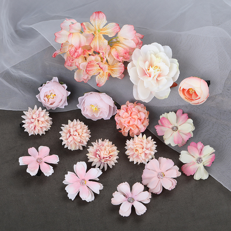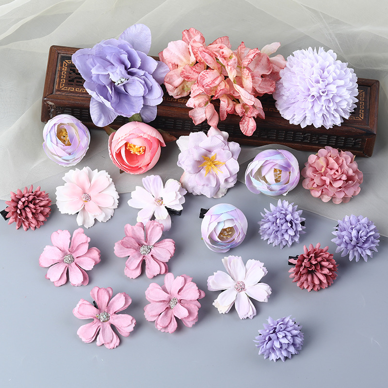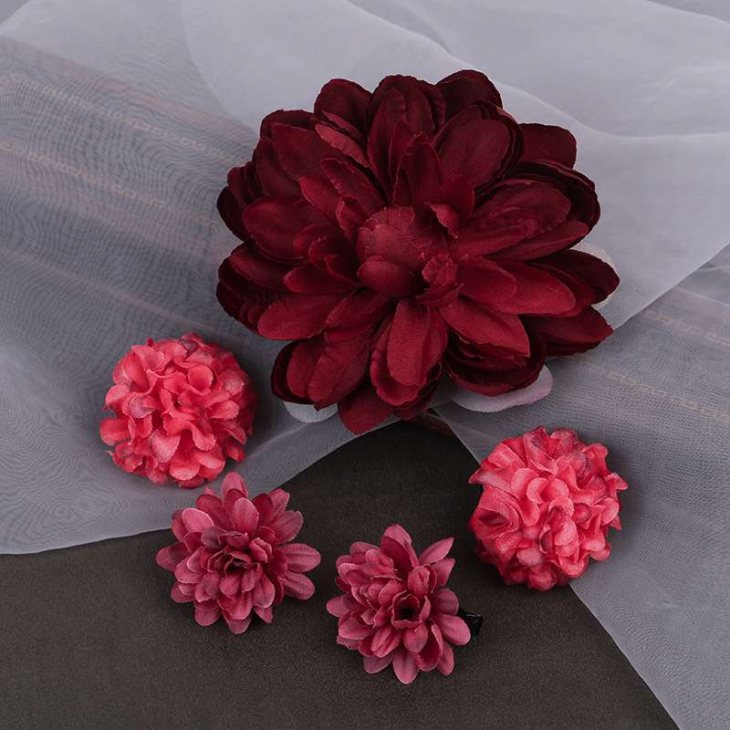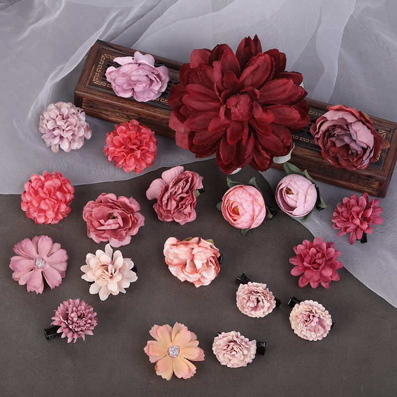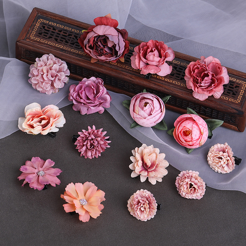 汉服绢花发饰簪花头饰套装 古风头花花朵发夹唐风边夹儿童饰品女