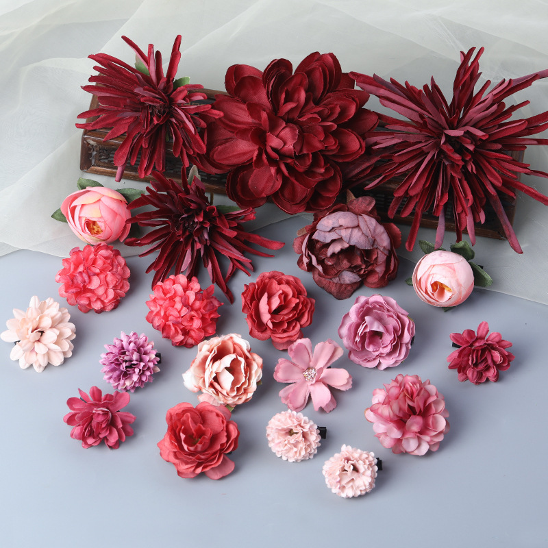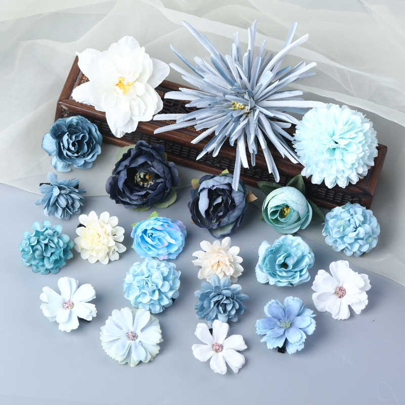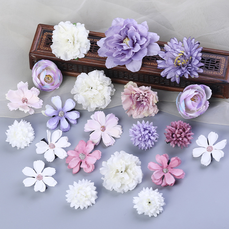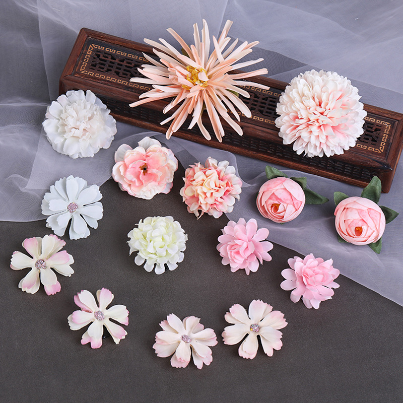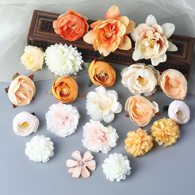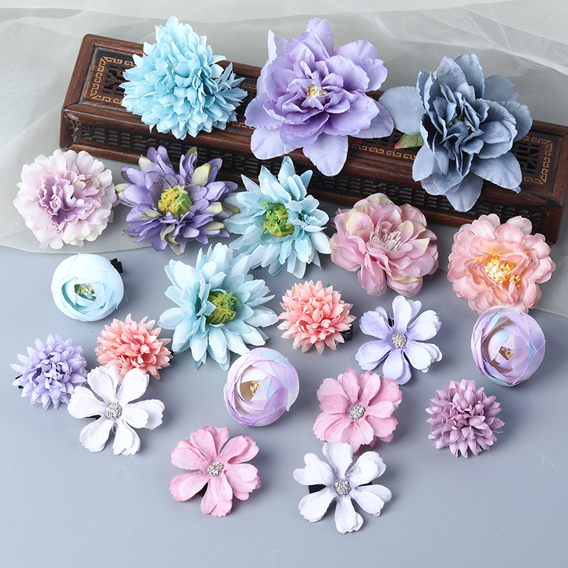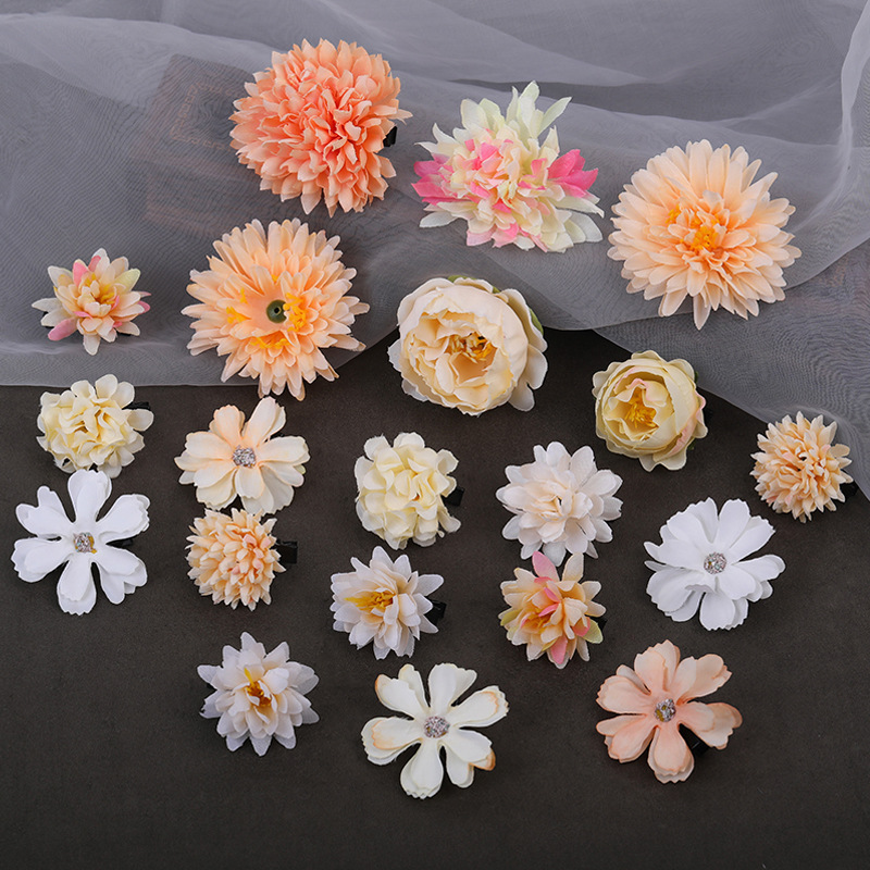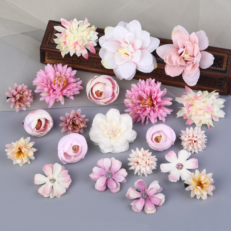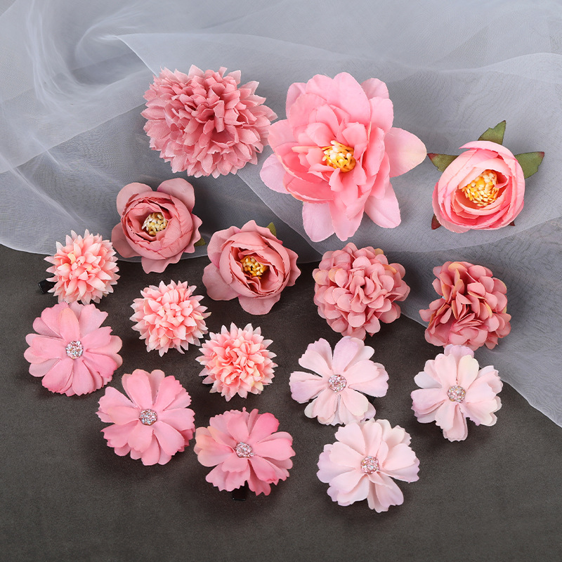 汉服绢花发饰簪花头饰套装 古风头花花朵发夹唐风边夹儿童饰品女