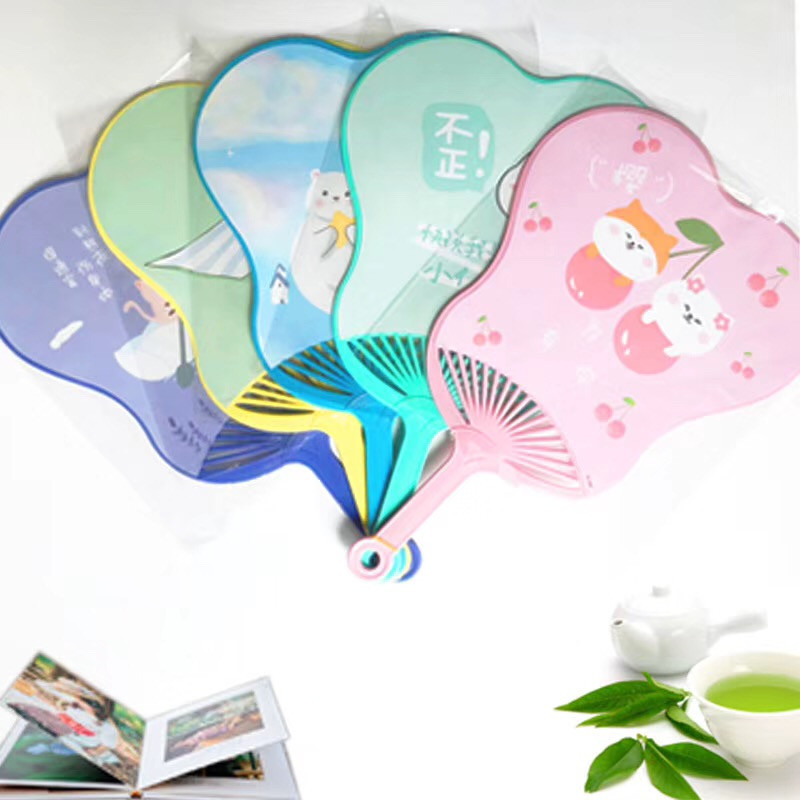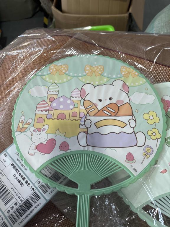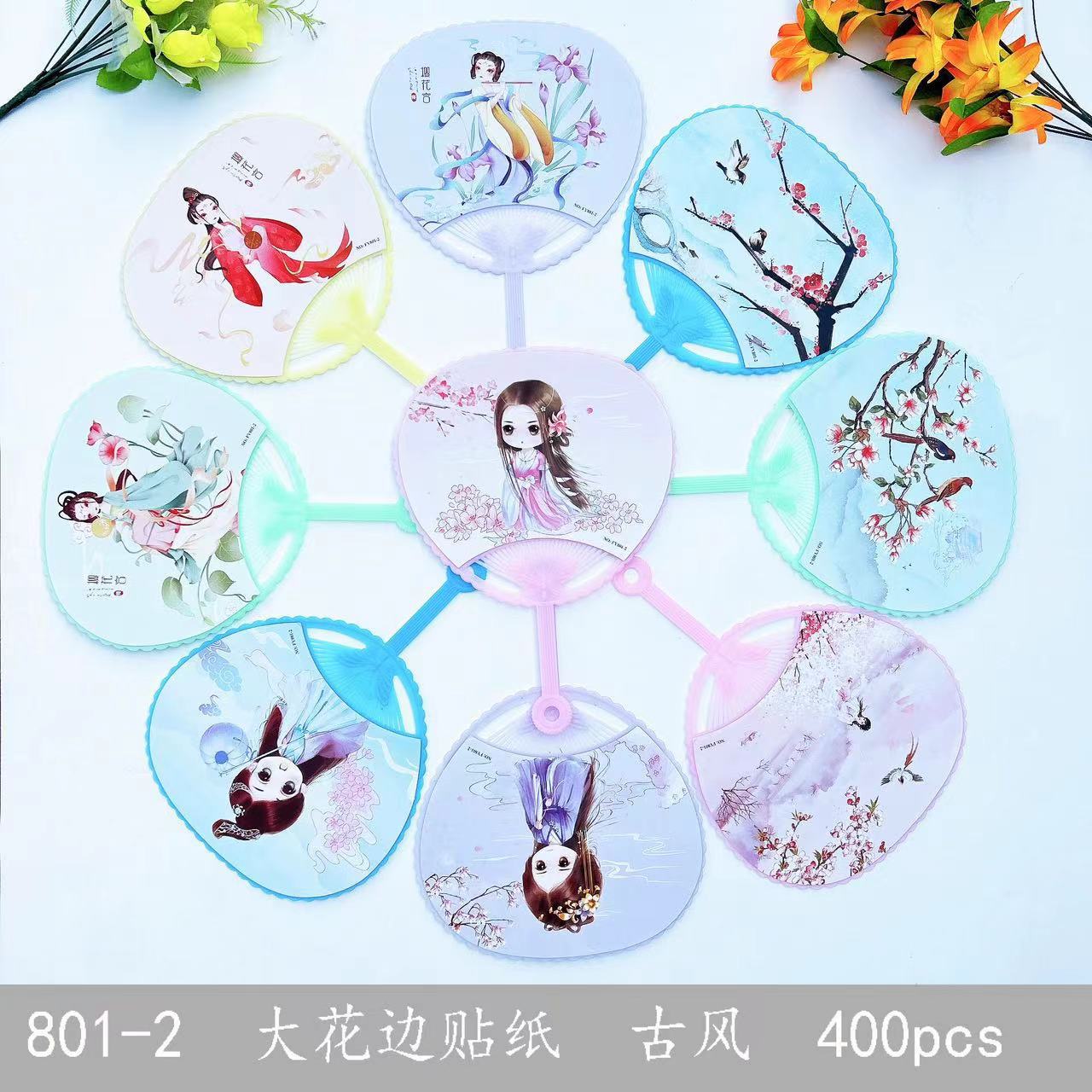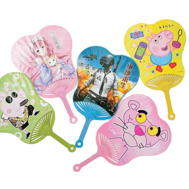 夏季新品大号芭蕉扇圆扇卡通手摇扇塑料亮膜不干胶