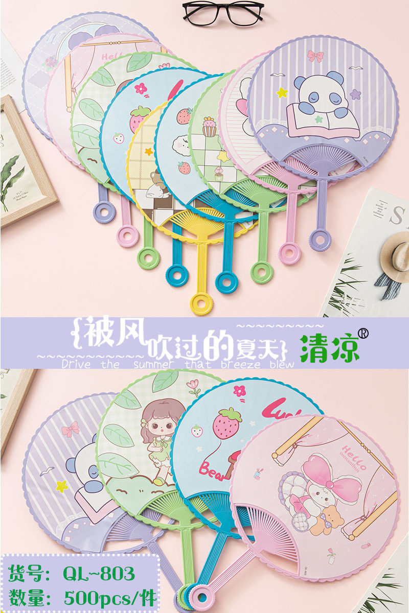 清凉扇业夏季新品大号卡通花边圆扇货号803厂家直销批发零售