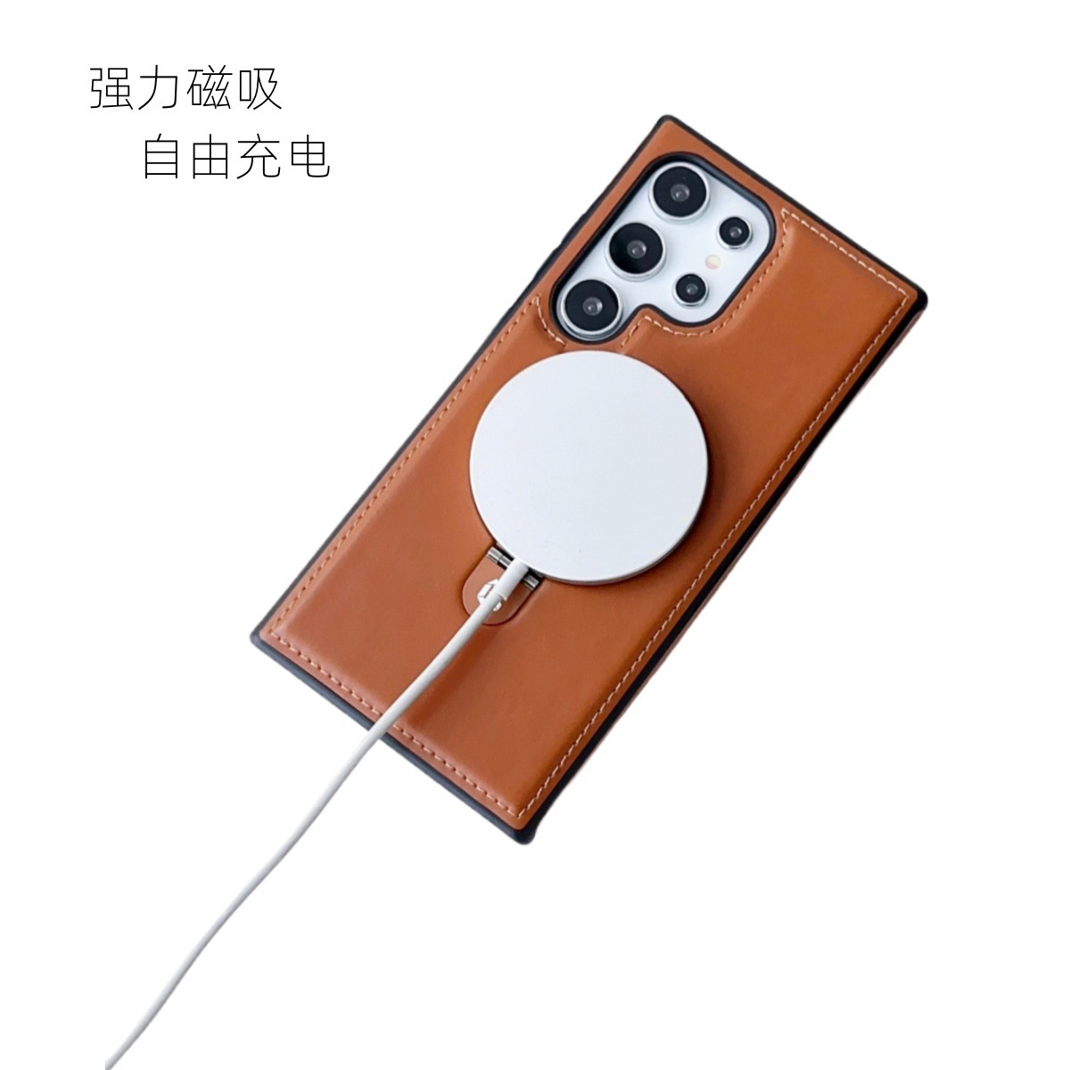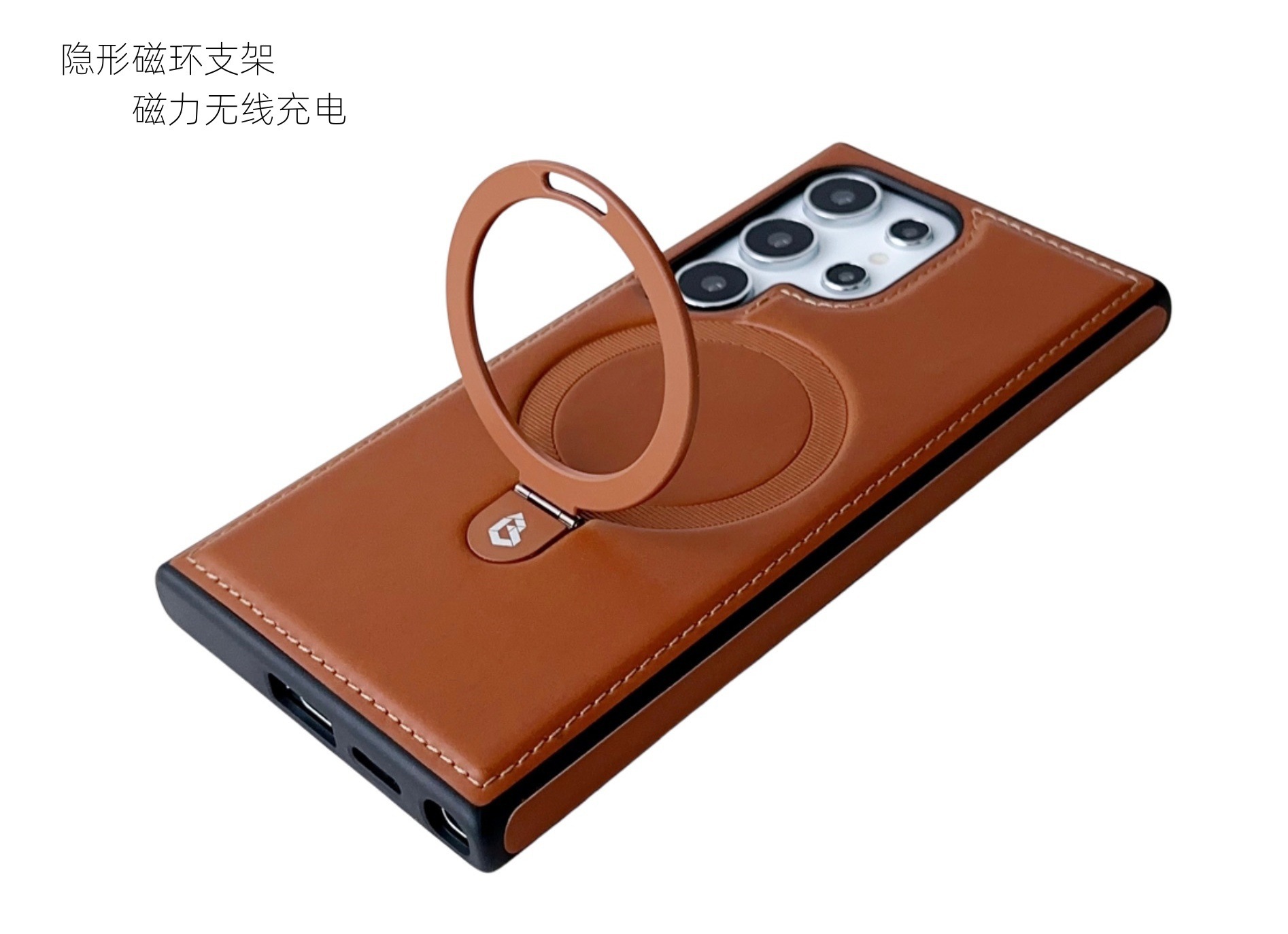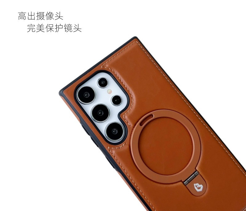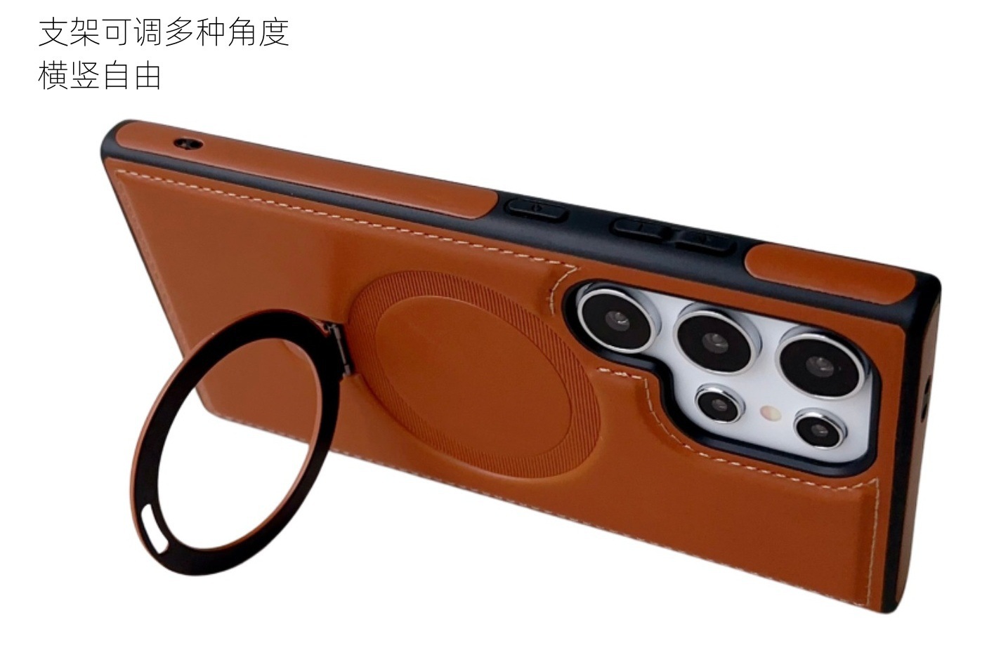 漏标商务皮套适用三星S24ultra手机壳自带支架S23高级皮质S22Plus