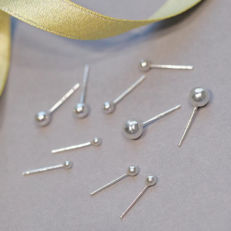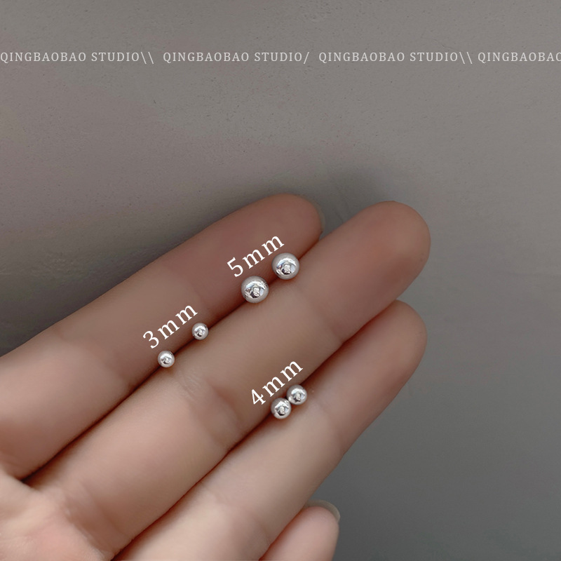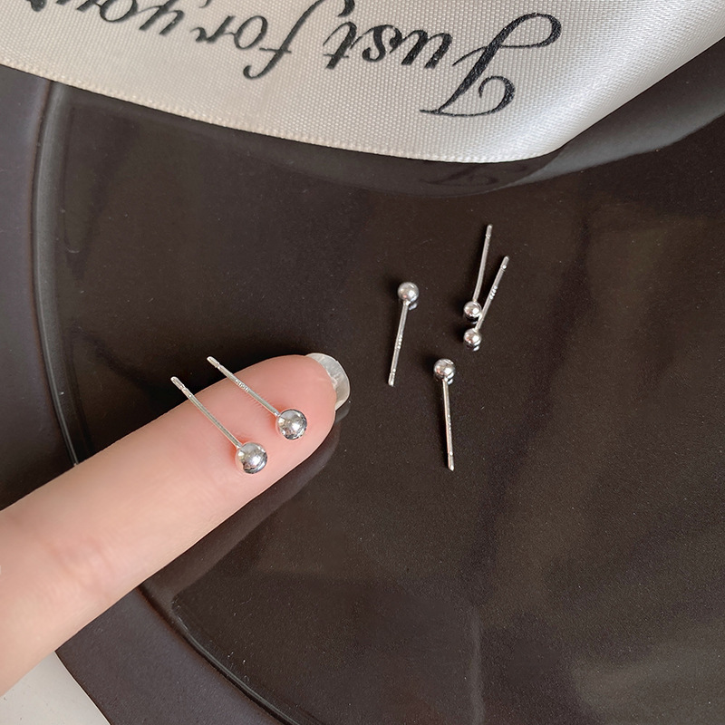 S925银针简约豆豆耳钉女百搭高级感迷你小圆珠耳环耳棒养耳洞耳饰